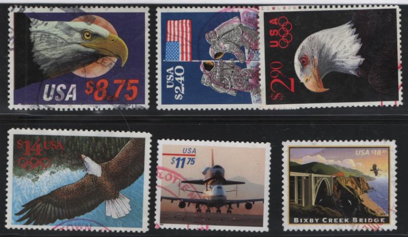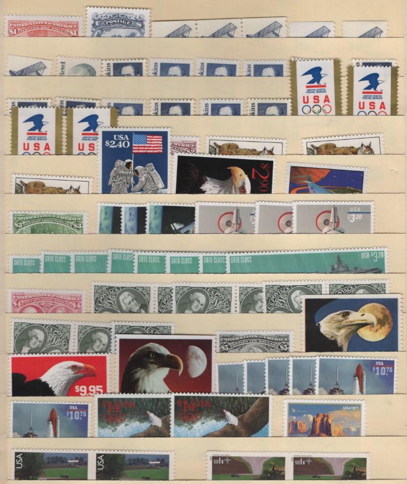 503 image Accum Unused NH, group (74), (26) diff high FV items $1-$14 on manila stkpg, w/ dup to (12) ea; incl 1992 Columbians, Express & Priority, airmail, definitives; gen VF (Image)