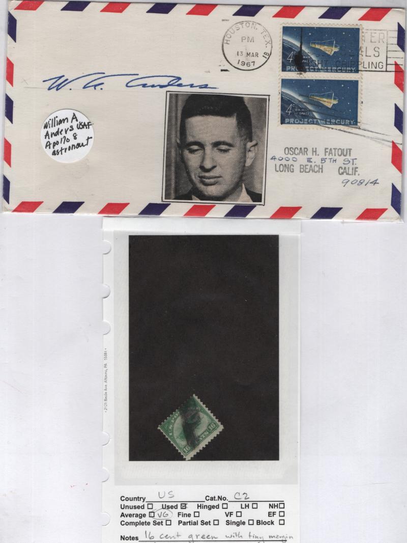 505 image Accum */O (100s) 19/20th Cent commems, regulars, BOB & revenues, few covers, wide variety of items, some postage & PNCs, in glassines, stkpgs, dealer pgs; saw used C2, C4, cover signed by W.A. Anders (Apollo 8 astronaut), unused incl Blk/25 imperf 15¢ Banneker w/ gutter (printer's waste w/ some DG from incinerator); cond varies, flts to most sound, gen F-VF (Image) (imageb) (imagec) (All Images)