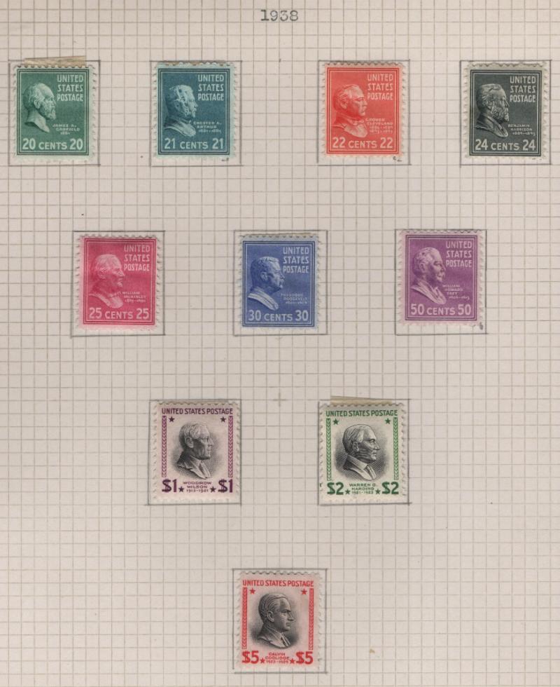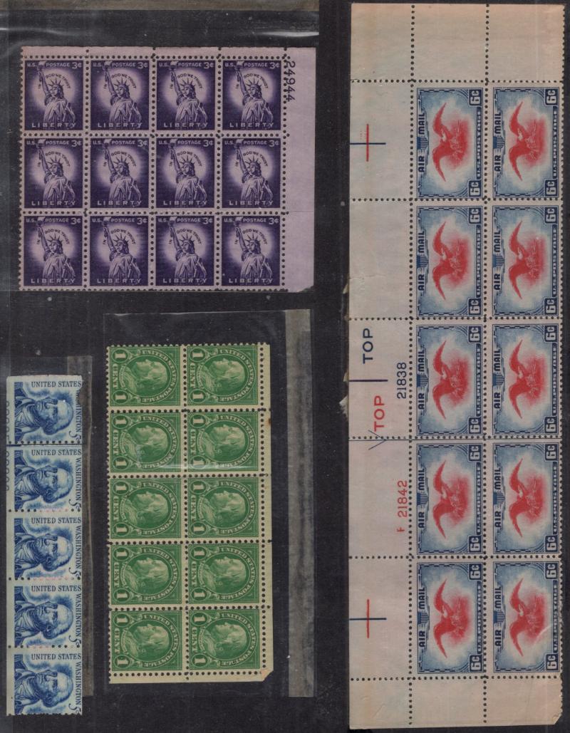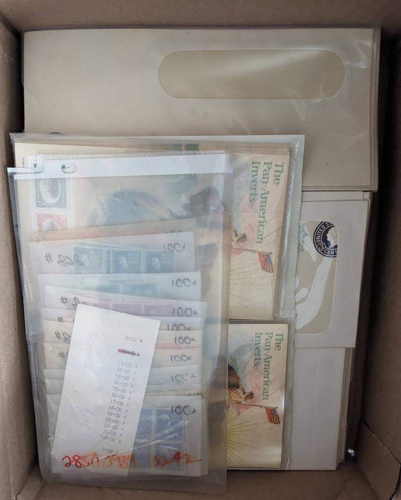506 image Accum #816-27 the 11¢-22¢ Prexy incl (100) copies of ea, mostly NH in partial Blks CV $198, US #3505 (118) copies Pan American partial sheets FV $8.26 & U539b (97) envs CV $1,358, VF (Image)