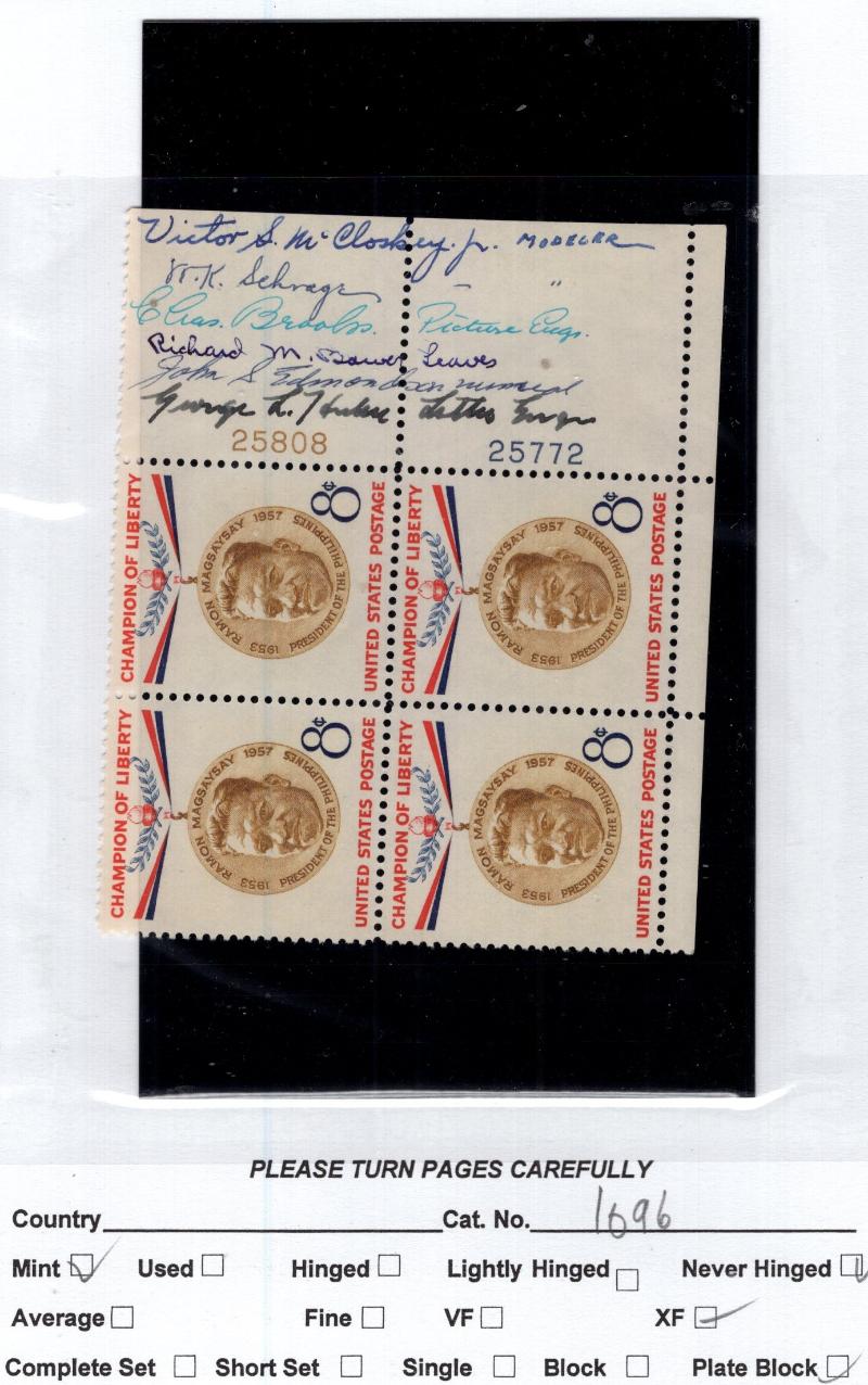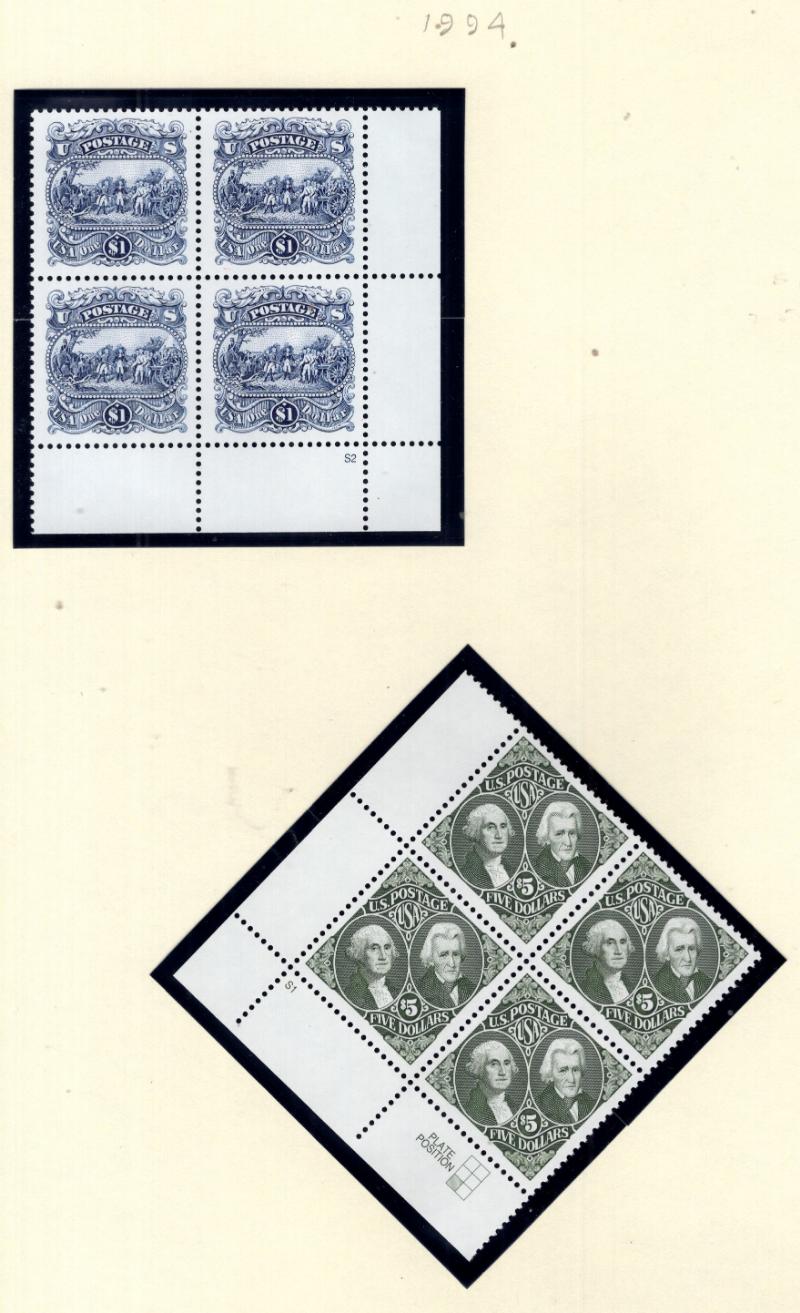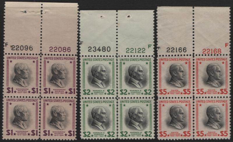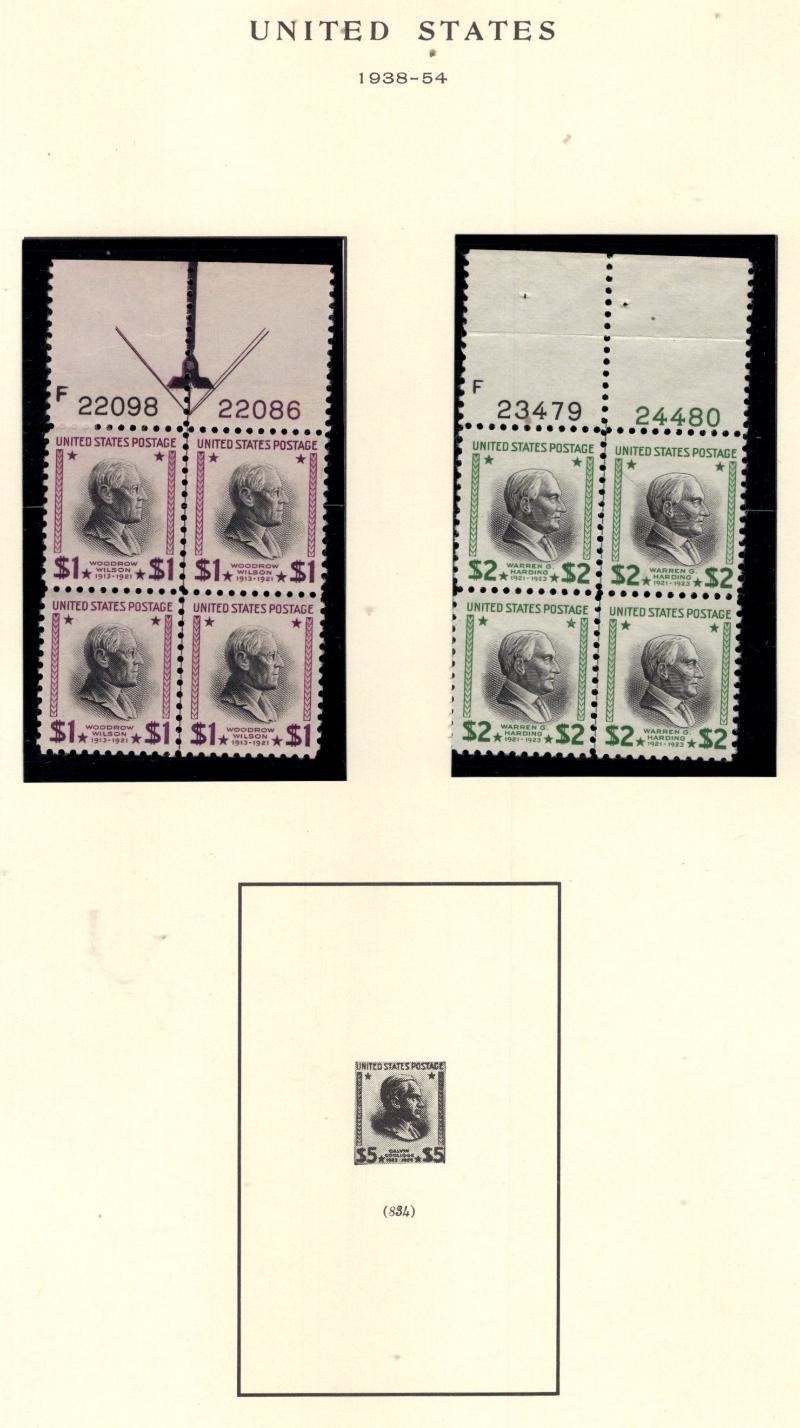 543 nh VF+ image 832-834 VF+ PRESIDENTIAL high values top pl# Blks w/ two #'s, some offset on gum o/w VF+ NH (Image)