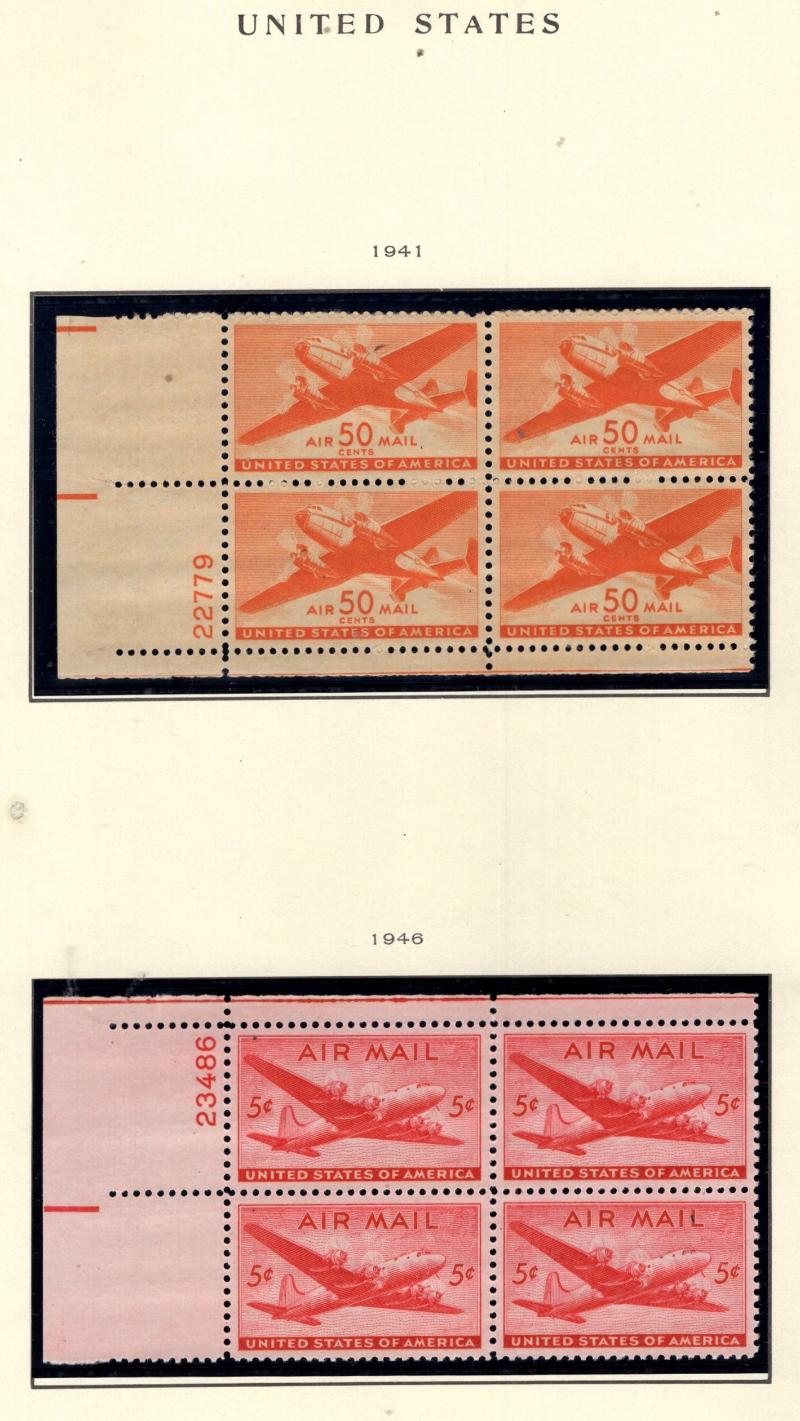 546 Plate Block Collection (100s) 1942-2007 in (5) albums incl defins, commems & airs incl #906, 909-21, 1030-52, 1053 H, C46 & others, also over $500 face in post-1965 incl $5 & few Priority Mail, gen F-VF H/most NH