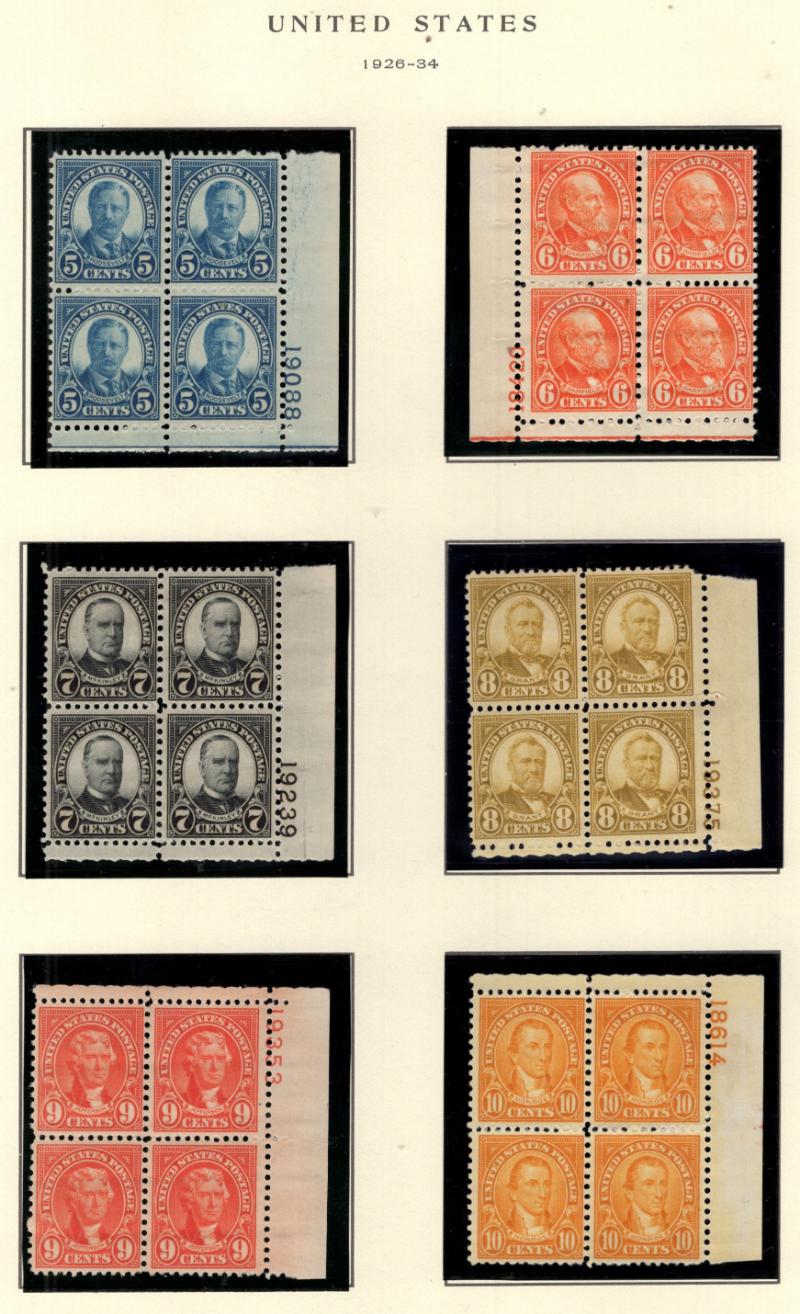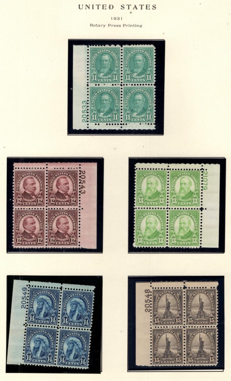 547 image Plate Block Collection (100s) 1923-41 in an album incl #610, 614-15, 617, 627, 628-29, 643-46, 647-48, 649-50, 657, 680, 682-83, 695, 697, 704-15 NG, 717-19, 740-49, 753-65, 771, 803-33, 859-93, C7-10, C16-17, C24, C25-31, E14, QE1-3 & others, gen F-VF H/NH (Image) (imageb) (imagec) (imaged) (imagee) (imagef) (imageg) (imageh) (imagei) (imagej) (All Images)