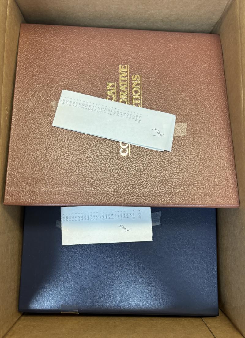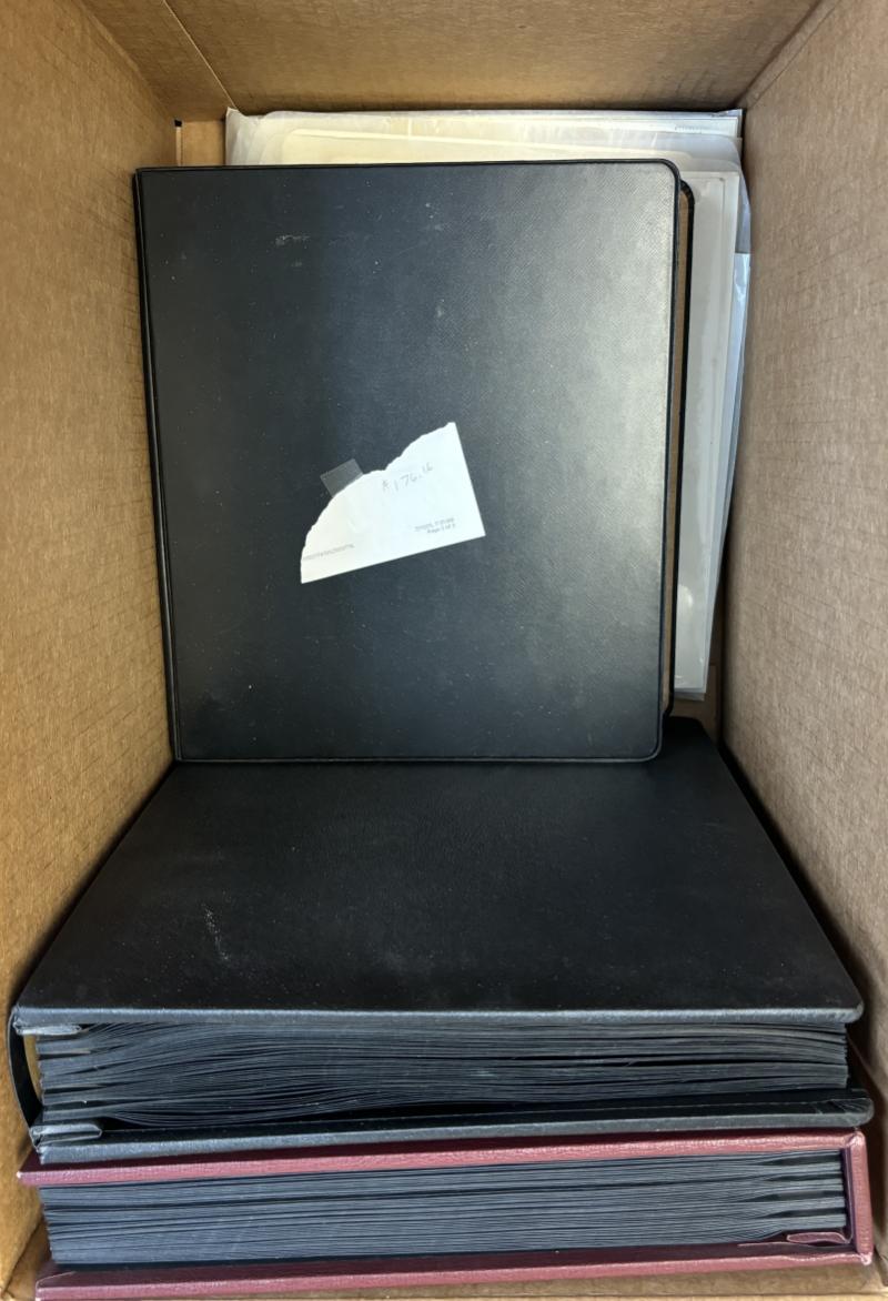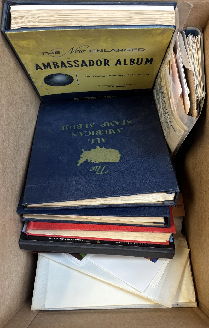 600 image Remainder Lot Accum US incl abt (150+) unused postal envs mainly #10 size 25¢-32¢ w/ much officials, abt (100+) unused postal cards 14¢-50¢ w/ some in USPS packaging, (2) empty 1950s Minkus All American albums & a Scott American, abt (100+) comml cvrs & FDC; WW incl moderately to well filled 1960 Harris Ambassador album, 1996 Canada Year set, 2001, 2002 Norway year sets & more; gen F-VF (Image)
