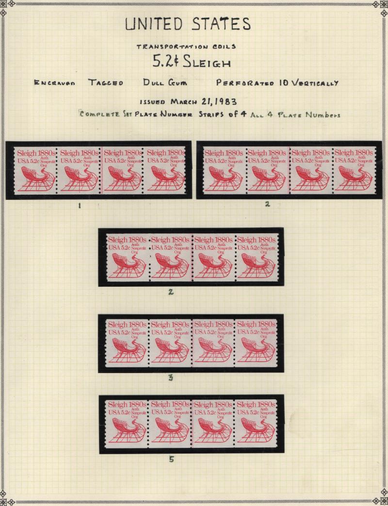 641 image TRANSPORTATION COILS Unused Collection abt (1000+) 1982-85 mounted on abt (100+) quad pgs in a 3-ring binder incl singles, pairs, PNC, pre cancels, strips of 3, 4 & 5 incl #1900 strip/4 (4) plate #3 & #5, 1903a strip/5 plate #8, many diff #'s on PNCs w/ 18¢ or 20¢ issues, some light dup, gen VF NH (Image) (imageb) (All Images)