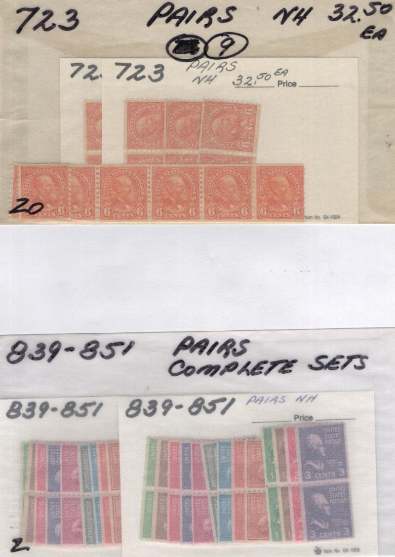642 image COIL Stock (1000s) #409//2518 unused sgls, pairs, strips & LP in glassines, IDed & priced (old), incl #603 pairs (3), 721 pairs (47), LP (5), 723 pairs (9), 839-51 pair sets (7), 843 pairs (11), 845 pairs (25), 846 LP (3), 847 pairs (6), LP (3), 1305C LP (4), 1816c LP (2); incl some precancels & few Bklt panes; mostly NH, largely F-VF or better, owner's FV $1,048 (NV) (Image)