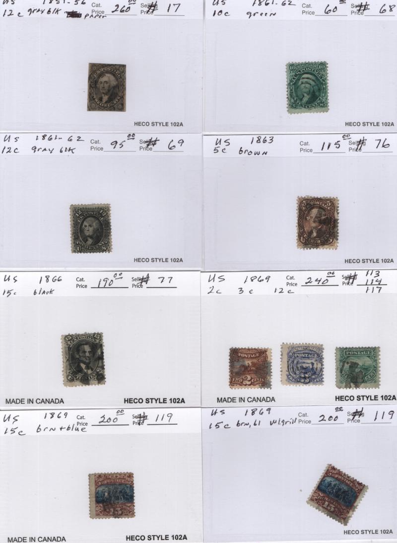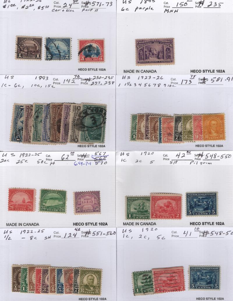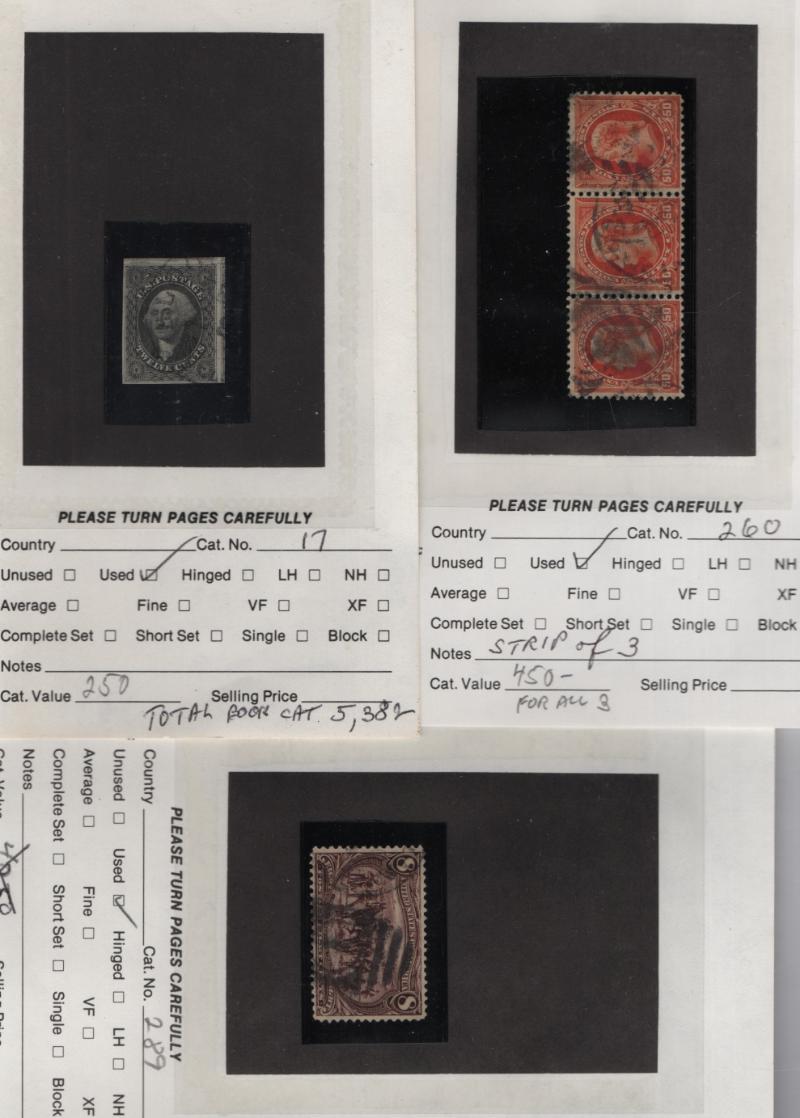 644 image Accum/Dealer Stock (100s) */O defins & commems 1851 to abt 1930 w/ dup on Scott IDed (some mis-IDed) 102 cards, incl Used: #11, 17, 68, 69, 76, 77, 113, 114, 117, 119, 182-89, 225-29, 230-40, 285-91, 294-99, 328-30, 339-42, 397-404, 437-40, 475-78, 479-80, 524, 547 & Unused: 213, 214, 232-33, 235-36, 238, 287, 289, 294 -99, 304, 307, 325, 373, 398-99, 495-97, 548-50, 551-60, 581-91, 699-701 & others, mixed cond incl mis-IDed, thins, NG, poor centering, etc to F-VF H (Owner's wildly optimistic CV is $39,000!) (Image) (imageb) (imagec) (imaged) (imagee) (imagef) (All Images)