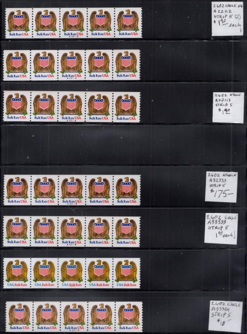 643 COIL Accum (1000s) in stkpgs, mostly PNC strips/5 w/ some shorter or unnumbered & few earlier incl #839-52, mostly commons but incl 2602 A12213 (10) & A33334 (9); NH, few Avg or F but gen F-VF or better, owner's FV $850 (NV) incl precancels