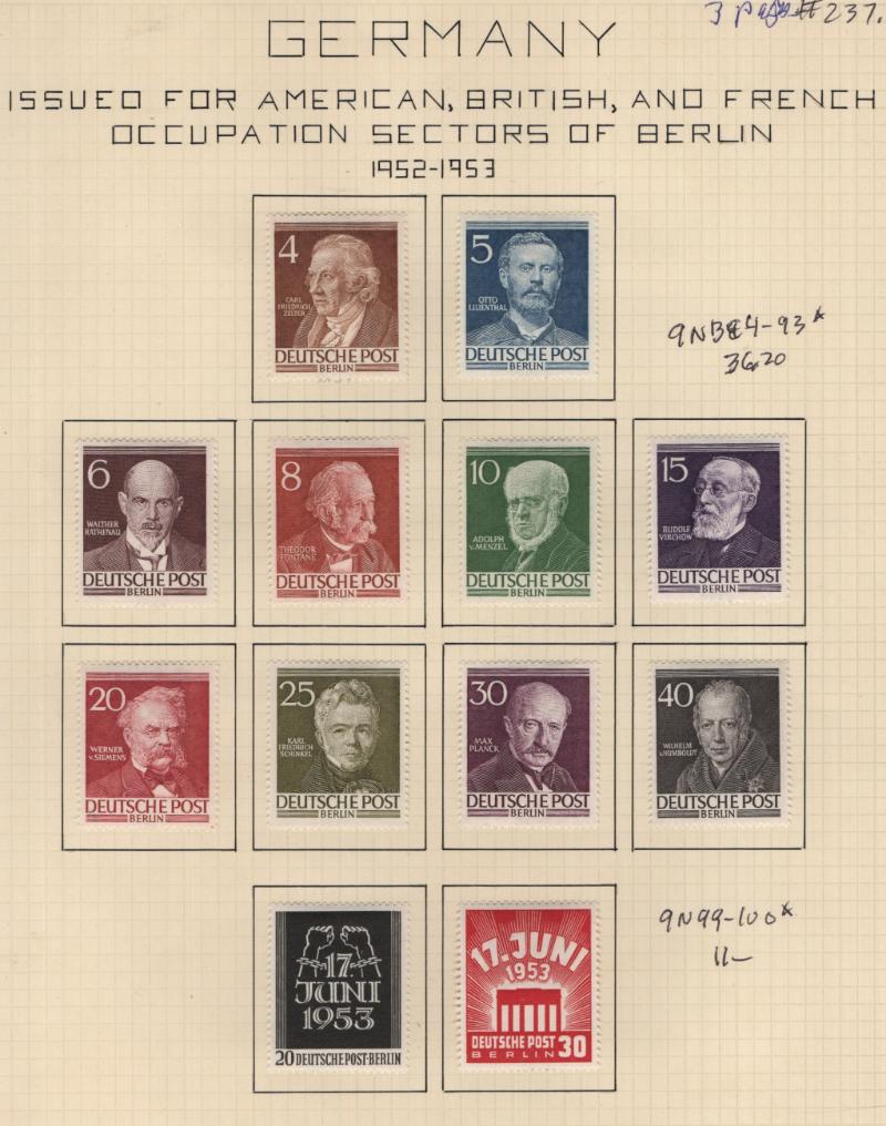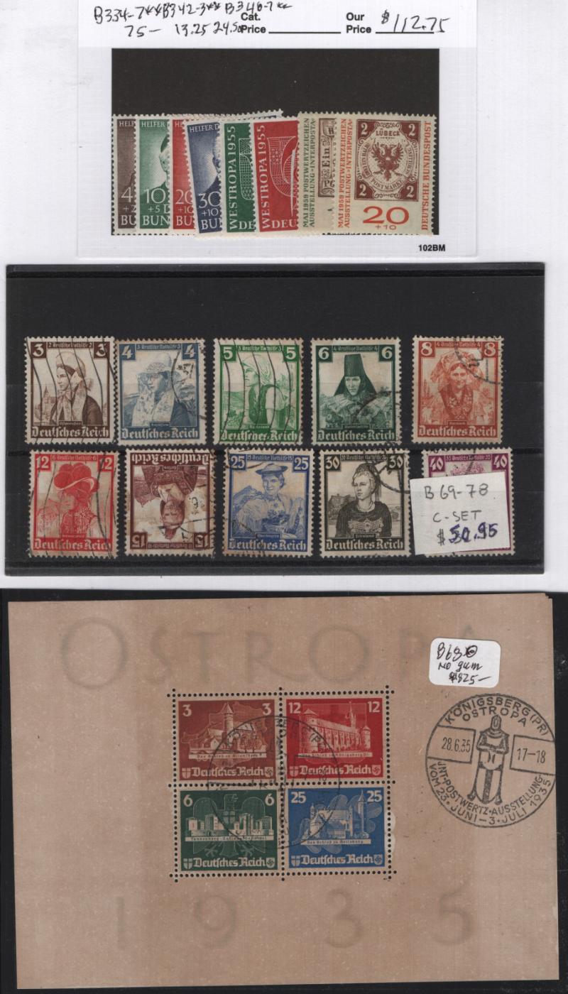 & Used: #351-62, 391-97, 401-04, 698-701, 702-21, B69-78, B79-81, B82-89, B93-101, B107-15, B331, B332-33, B338-41, C46-56, C61-64, Berlin used #9N94-98, 9N99-100, 9N108-10, 9N115, 9NB12 & many more, few flts but most VF H/NH (Image) (imageb)