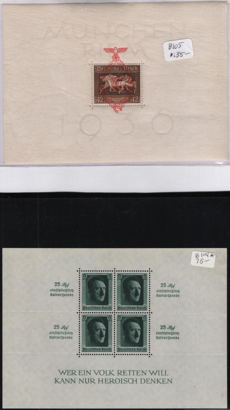 WHOLESALE GROUP of S/S */O owner IDed & CV (NV), many NH, some FDC cancels, incl Unused: B90 (5), B91-92 (2) extra B92, B102 (9), B103 (2), B104 (15), B105 (12), B106, Used: B102 (8), B103 (2), B105 (9), B106, some staining but mainly VF H/NH (Image) (imageb)