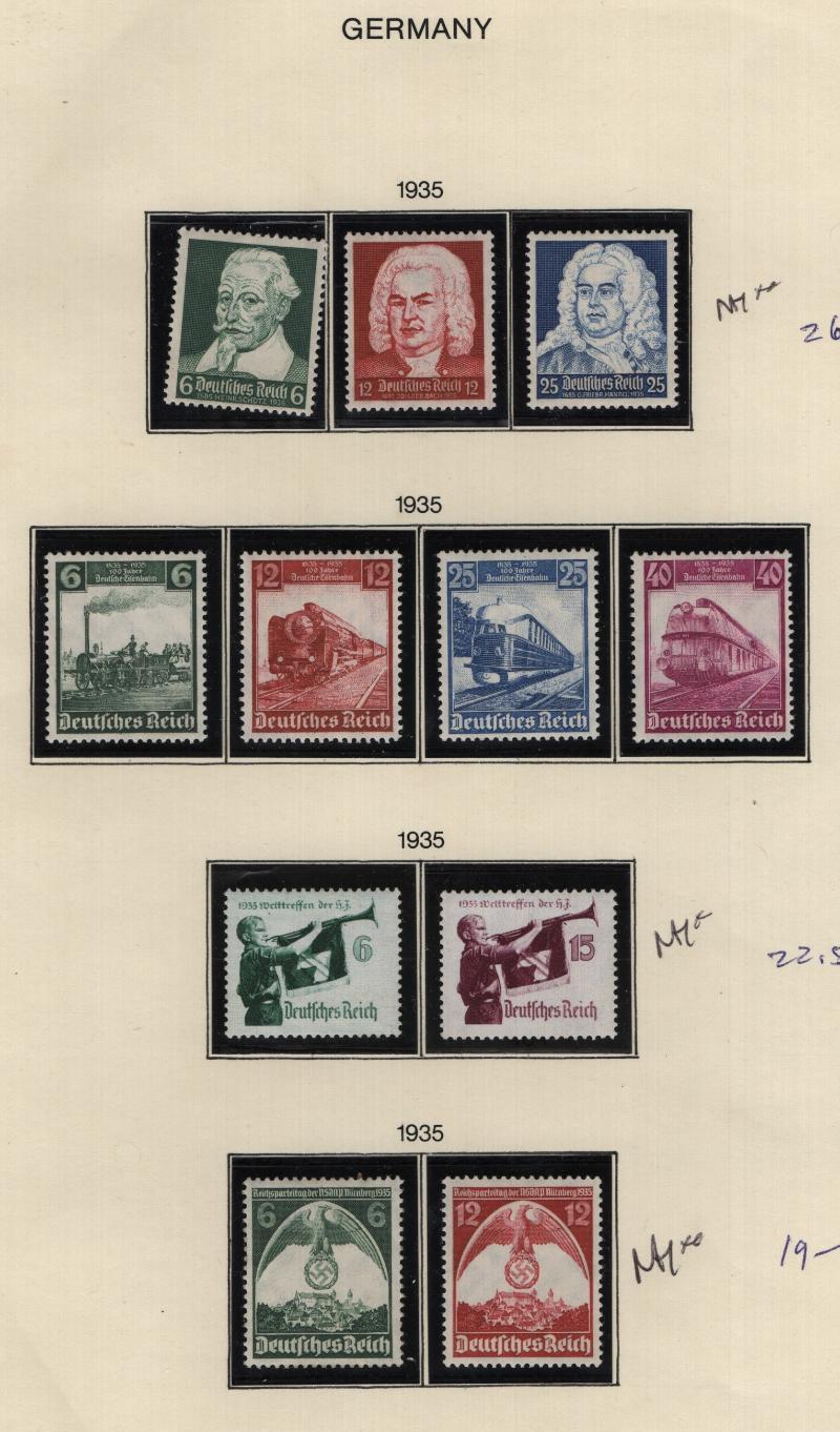 Collections (1000s) */O on album pgs & Vario pgs, many higher values, owner IDed & CV (NV), w/ Germany Unused: #337-39, 350, 363-65, 366-84, 398-400, 432-35, 436-41, 454-55, 456-58, 459-62, 463-64, 465-66, B33a & b (2) ea NH, B38-41, B102, B104, B105