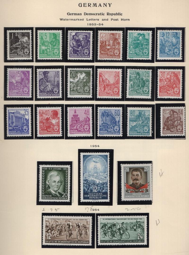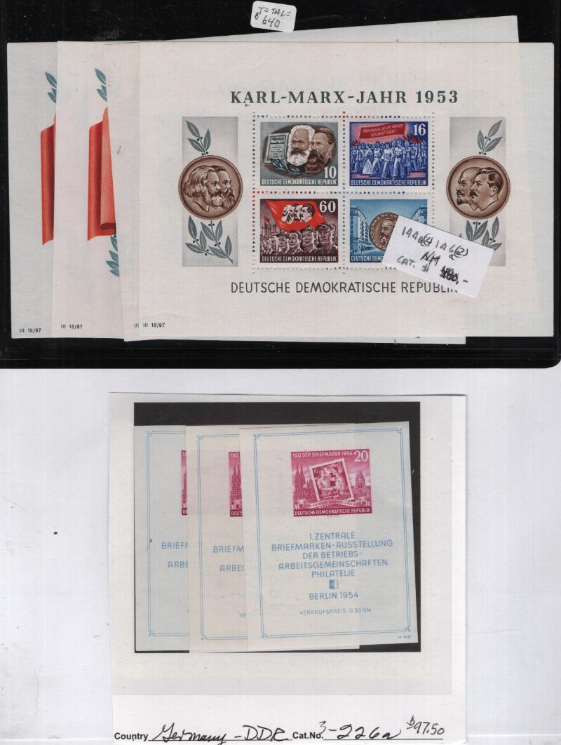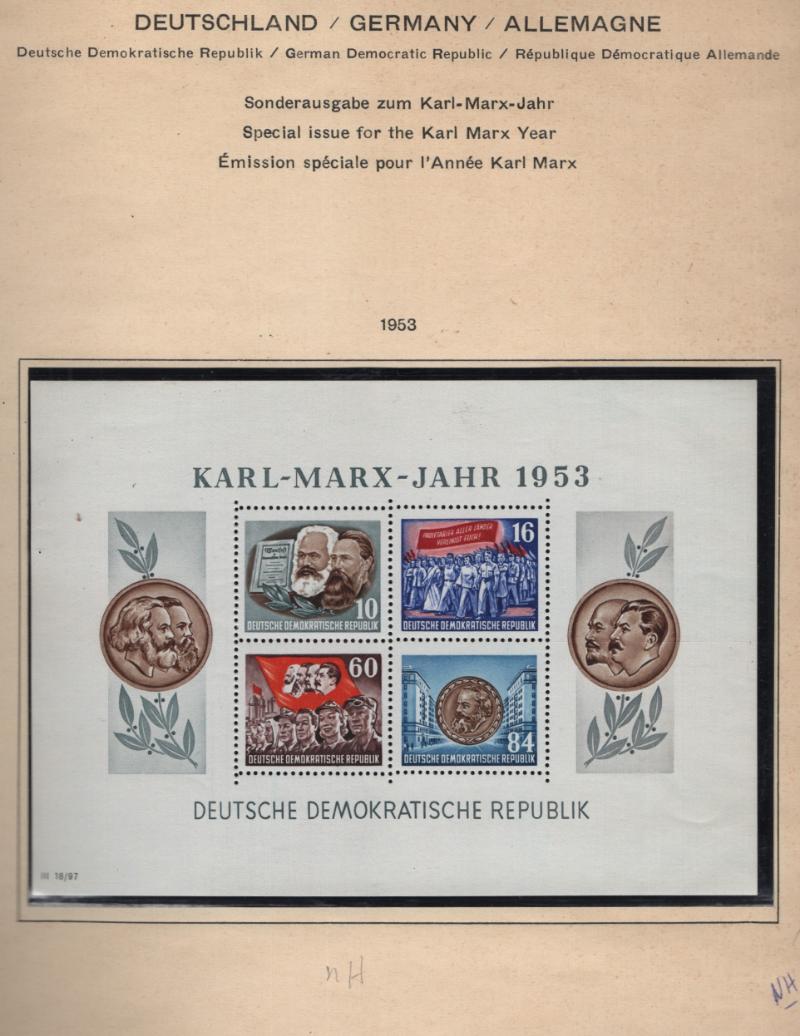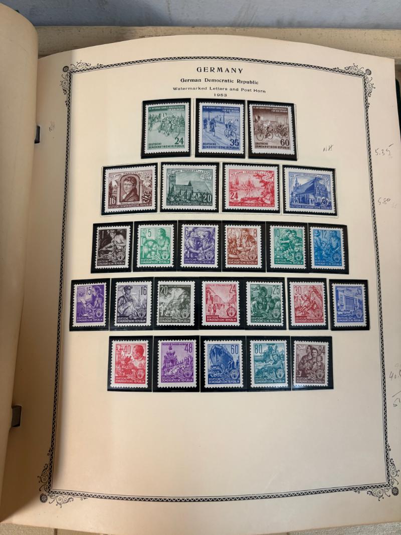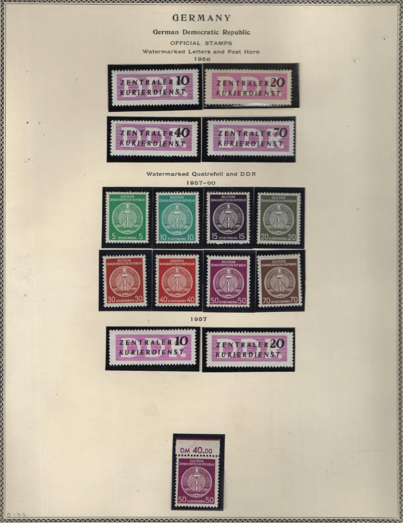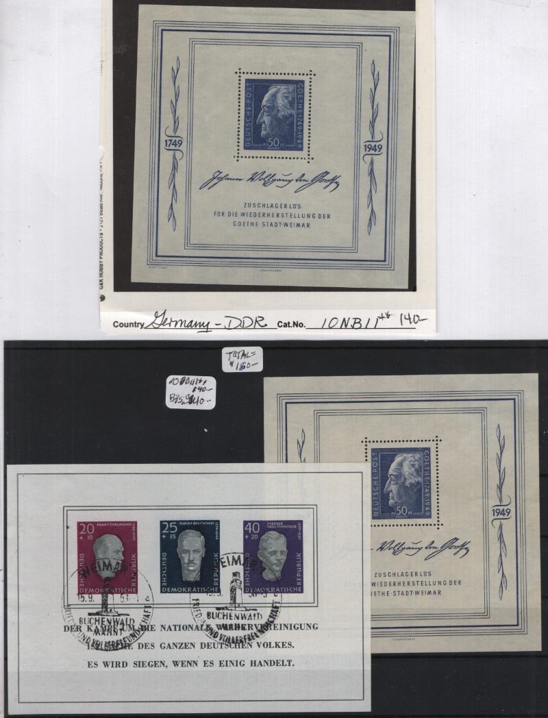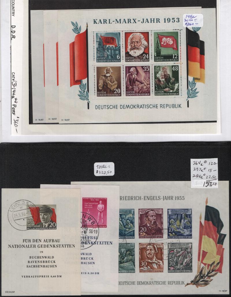 (1000+) */O owner IDed & CV (NV) on album pgs & Vario stkpgs, some better w/ singles, cplt sets & nice S/S incl Germany DDR unused #264a, 272-77, 280-83, 288a, B35a, O33-36, used B334-37, Berlin 9N64-67, 9N68, 9N70-74, 9N75-79, 9N80, 9N81-83,