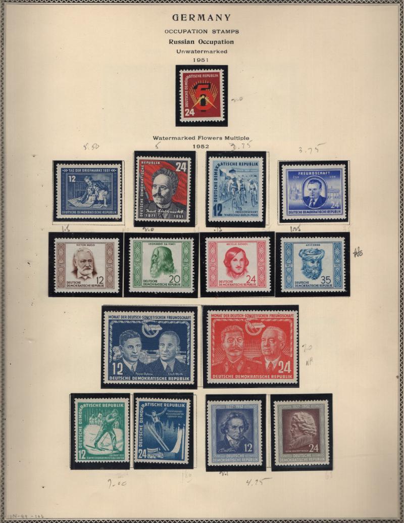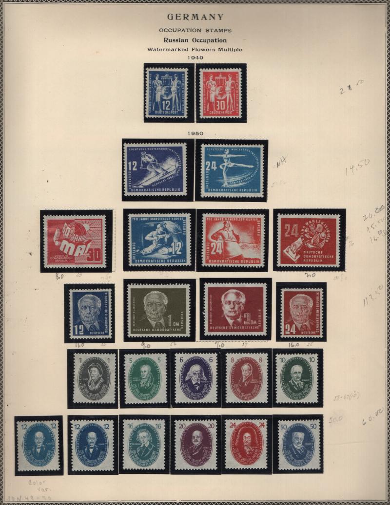 Collection in Scott binder & pgs w/ 1948 Russian Occupation #10N1-10N47 & DDR pgs 1949-78 (100s ) */O H/NH, abt 90% filled incl Unused: #48-53, 54-57a, 58-67, 68-69, 81, 82-84, 85-88, 103-06, 113-17, 122-36, 137-46, 155-71, 187-204, 216-23, 272-77 &