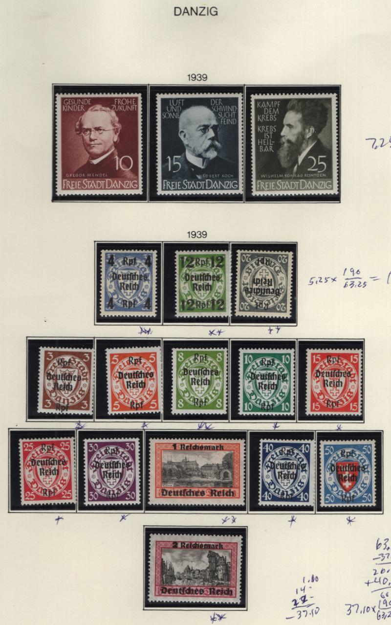 N33-N47 used, Saar used 30, 57, 58, 65-67, 68-82, 183, 184, 185, 186, 187, B74, C9-11, Danzig unused 1-12, 15, 40, 194-98, 219-20, 221, 225-32, 241-54 & so much more, few flts but most F-VF H/NH (Image) (imageb)