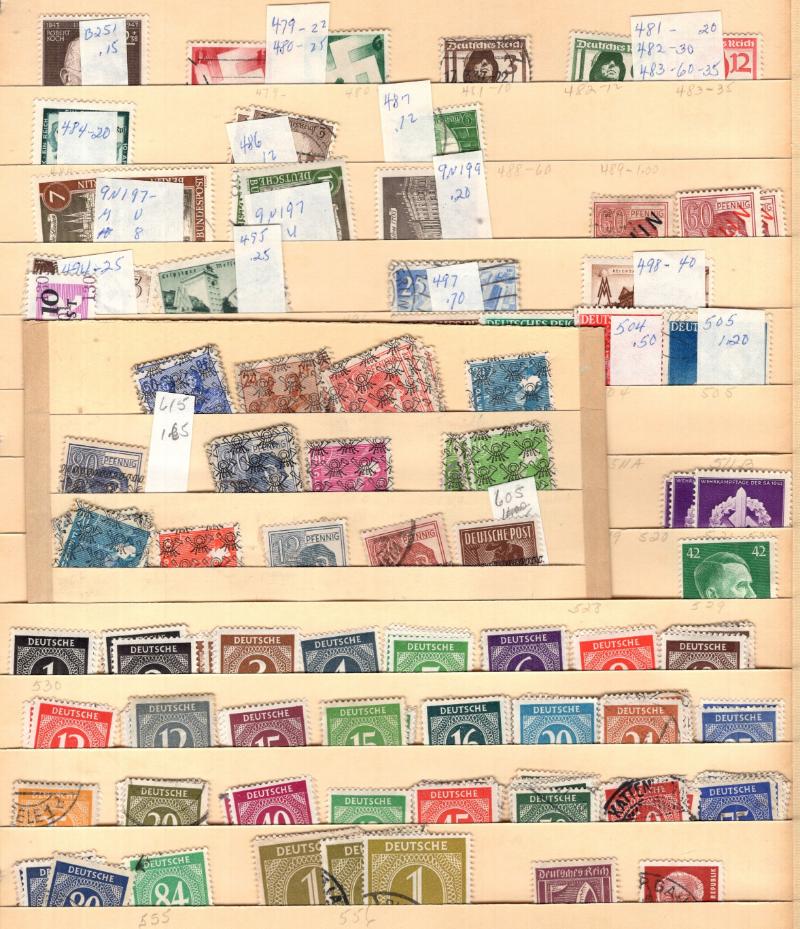 Extensive Stock (1000s) */O w/ dup on mainly on cards & lot pgs 19/20th Cent to the 1980s, incl Inflation, Third Reich, Bund, Berlin, Occupations, Plebiscites, Offices, Colonies, etc some better incl used Germany B325-26, B327-30, 9N38,