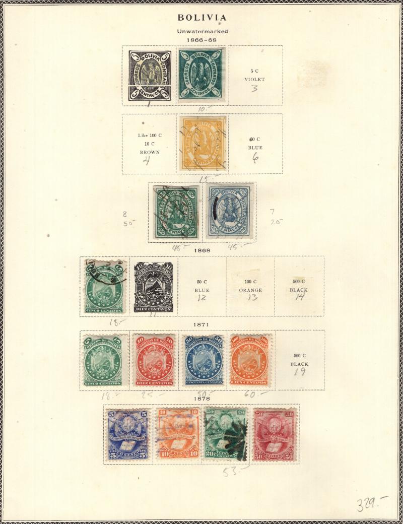 Countries (1000s) */O consisting of Argentina 1858-1966, Bolivia 1866-1966, Chile 1856-1967, Colombia 1940-83, Cuba 1857-1961, Ecuador 1865-1965 & Mexico 1856-1979, all on Scott pgs except Mexico on Minkus; cond varies, expect some flts or Avg but