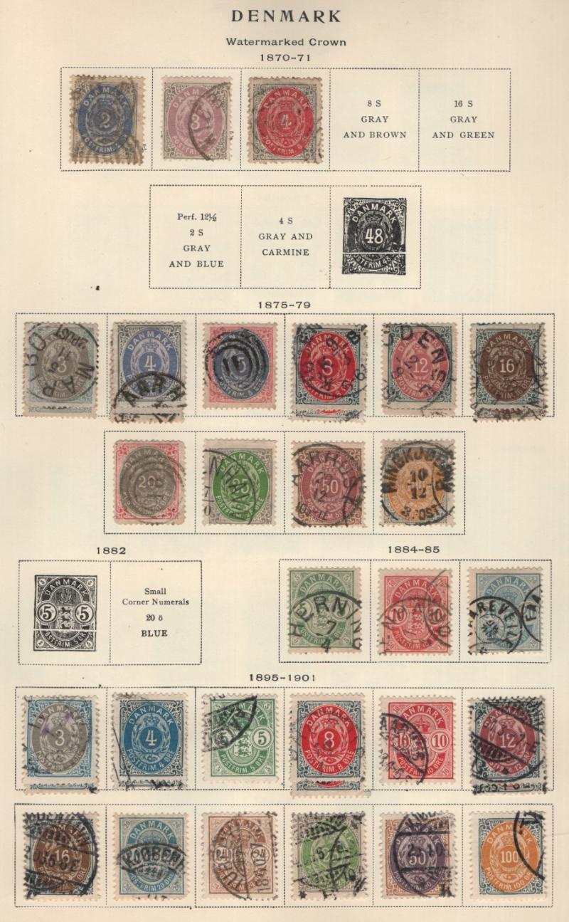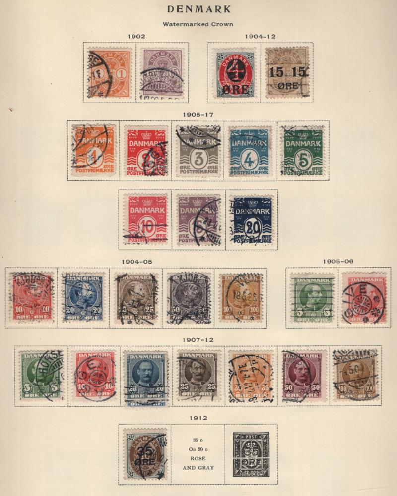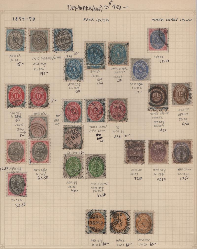 Accum (100s) */O (4) diff countries on pgs, owner IDed & CV (NV) w/ dup, incl Denmark unused #57-64 & 64a which is Michel #65, AFA 66a (Blackish Blue) w/ Cert, 409-10 (15), 544 (3), B49-52 (20), used #25, 25c, 26, 26b, 27, 29, 29b, 31, 31b, 32, 32a,