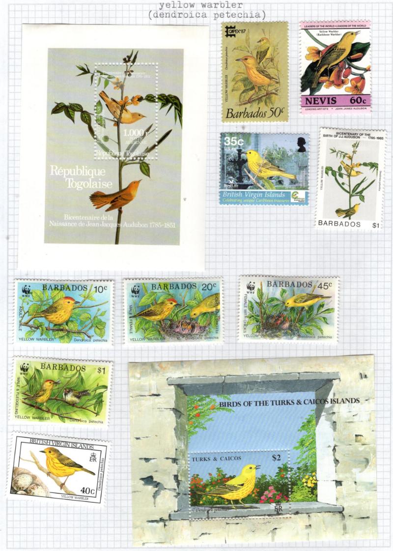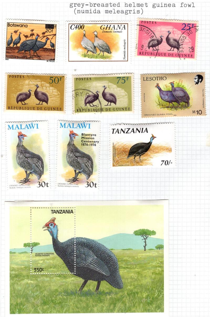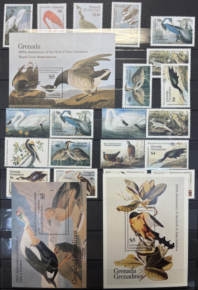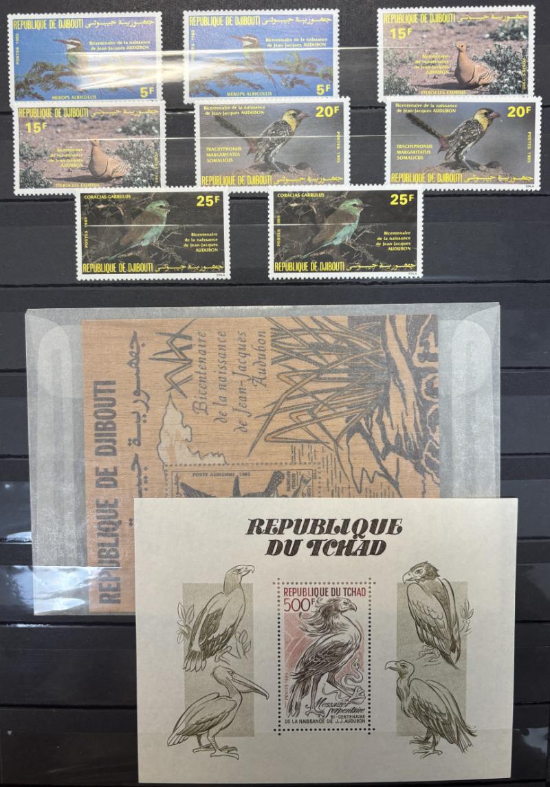 are dedicated to birds, saw Bechuanaland #124-36, 169-79, Bahrain 336-37, Fiji 591-94, Gambia 132-42, S Georgia 151-56, Falkland Is 535-40, looks to be 99% unused, all hinged, saw no flts, most VF (Image) (imageb)