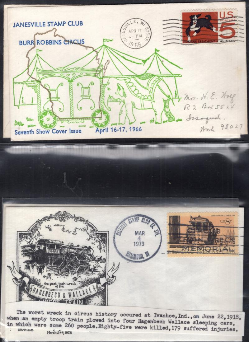 circus art 200 years, Australia, Monaco, DDR, Germany, Argentina, Hungary, Denmark & much more, cover for the worst wreck in circus history, empty troop train hit circus train that 85 were killed, a real piece of circus history, nice selection &