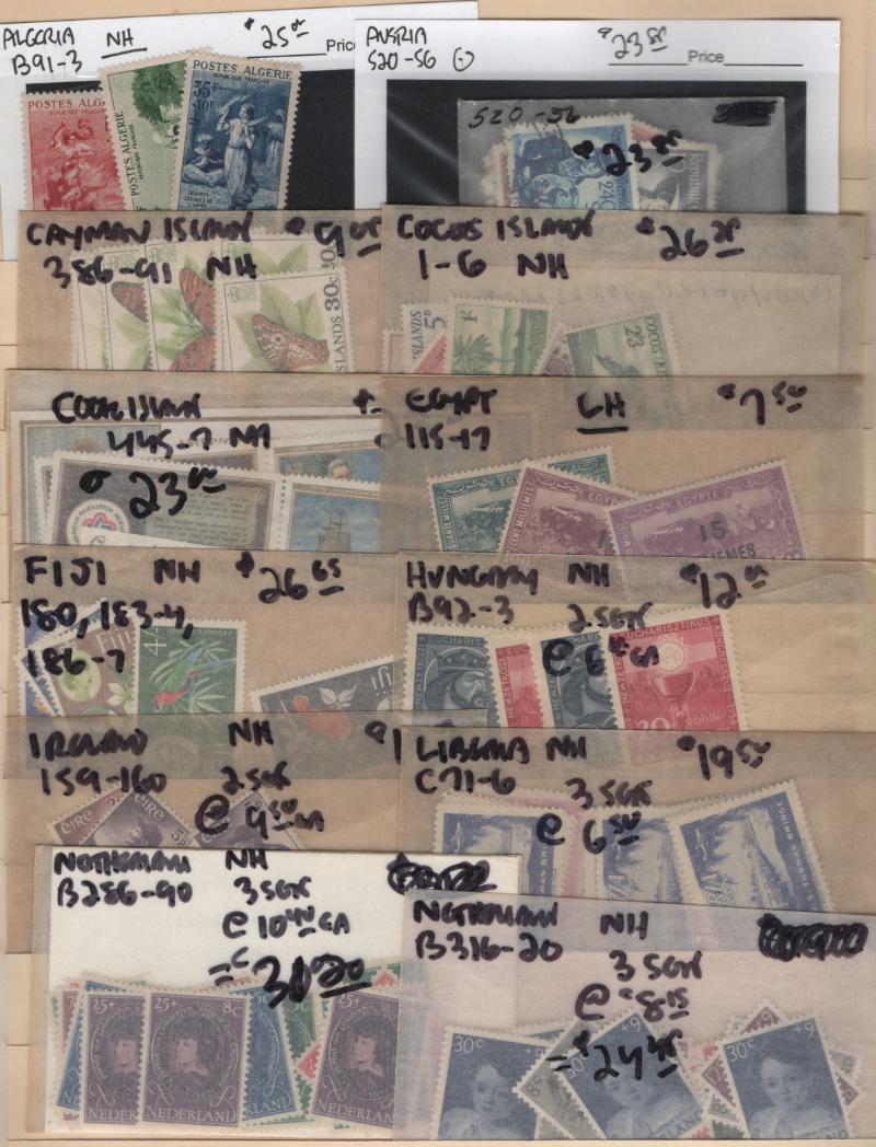 1153 image Accum (1000s) */O stamps mostly WW in glassines, dealer cards & pgs, many diff countries, looks to be mainly up to $20, a few higher, great cold night project, few flts but mainly F-VF H/NH (Image)