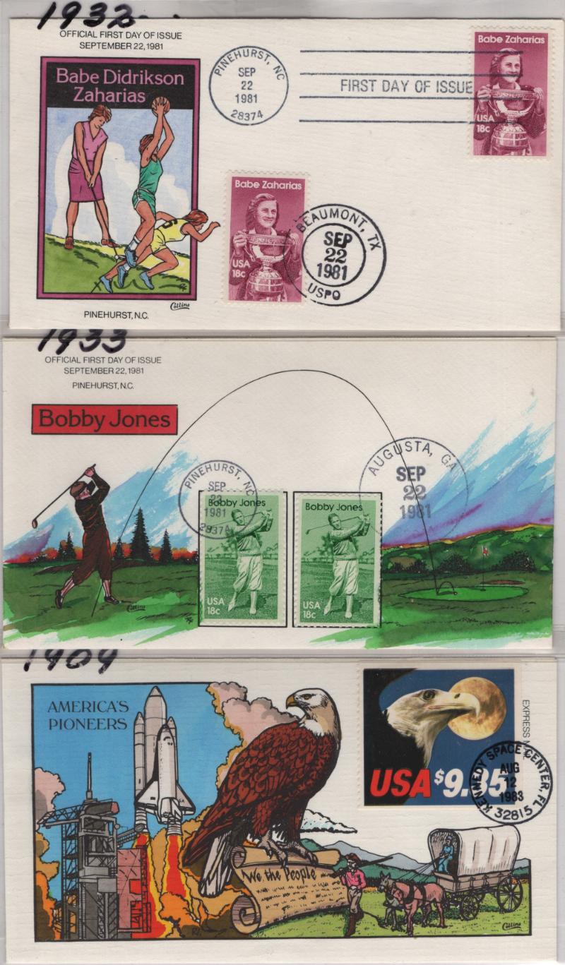 abt (61) FDC & event incl (16) baseball, 2011 & 2012 Civil War sets, #3072-75, 3077-80, 3912-15, Birds & Wildlife, Space, etc; gen VF (Image) (imageb)