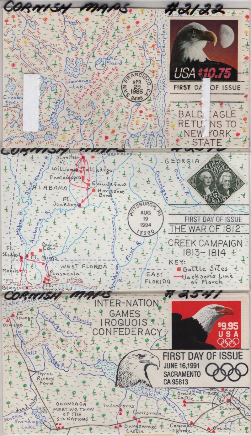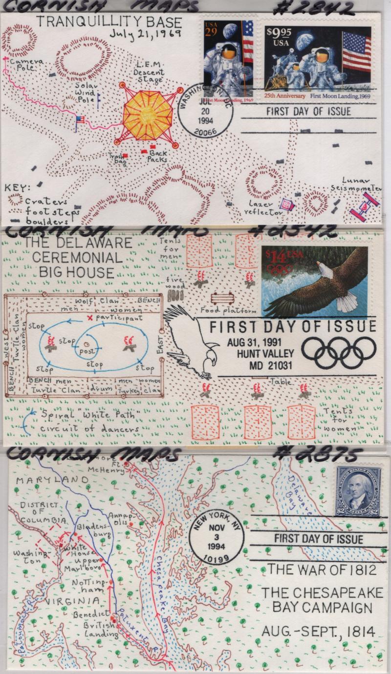 CORNISH (6) high FV w/ map cachets consisting of #2122 (#6 of 8), 2540-42, 2842 & 2875, gen VF (Image)