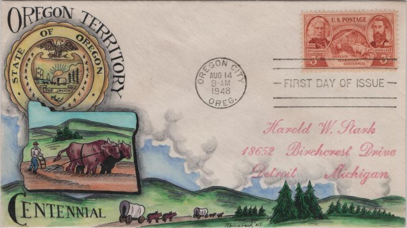 #964 3¢ Oregon Territory, neatly addr, corner glue marks on back , F-VF+ (Image)