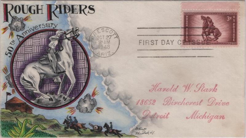 #973 3¢ Rough Riders, neatly addr, corner glue marks on back, F-VF+ (Image)