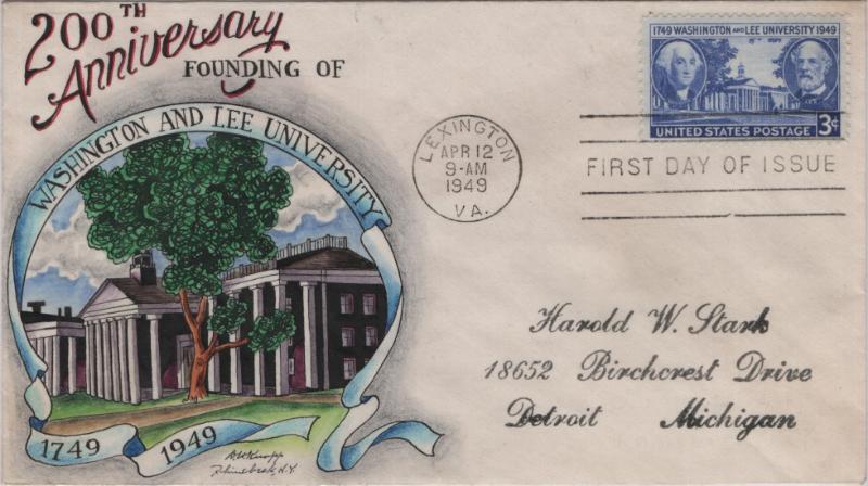 #982 3¢ Washington & Lee University, neatly addr, corner glue marks on back, F-VF+ (Image)