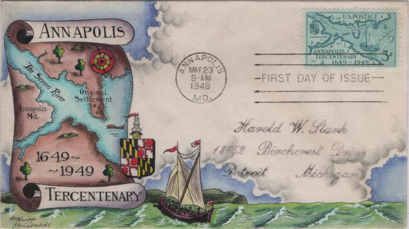 #984 3¢ Annapolis, neatly addr, corner glue marks on back, F-VF+ (Image)
