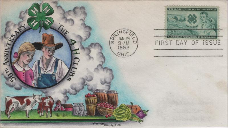 #1005 3¢ 4-H Club, erased addr, F-VF+ (Image)