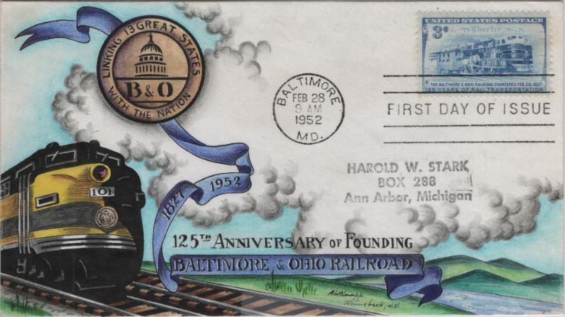 #1006 3¢ B&O Railroad, neatly addr, corner glue marks on back, F-VF+ (Image)