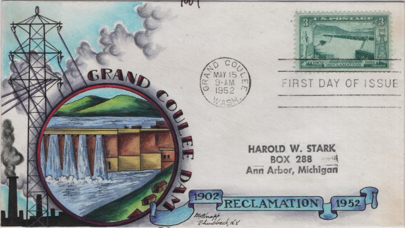 #1009 3¢ Grand Coulee Dam, neatly addr, corner glue marks on back, F-VF+ (Image)