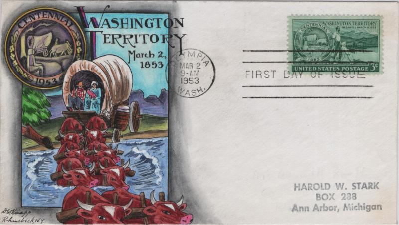#1019 3¢ Washington Territory, neatly addr, corner glue marks on back, F-VF+ (Image)
