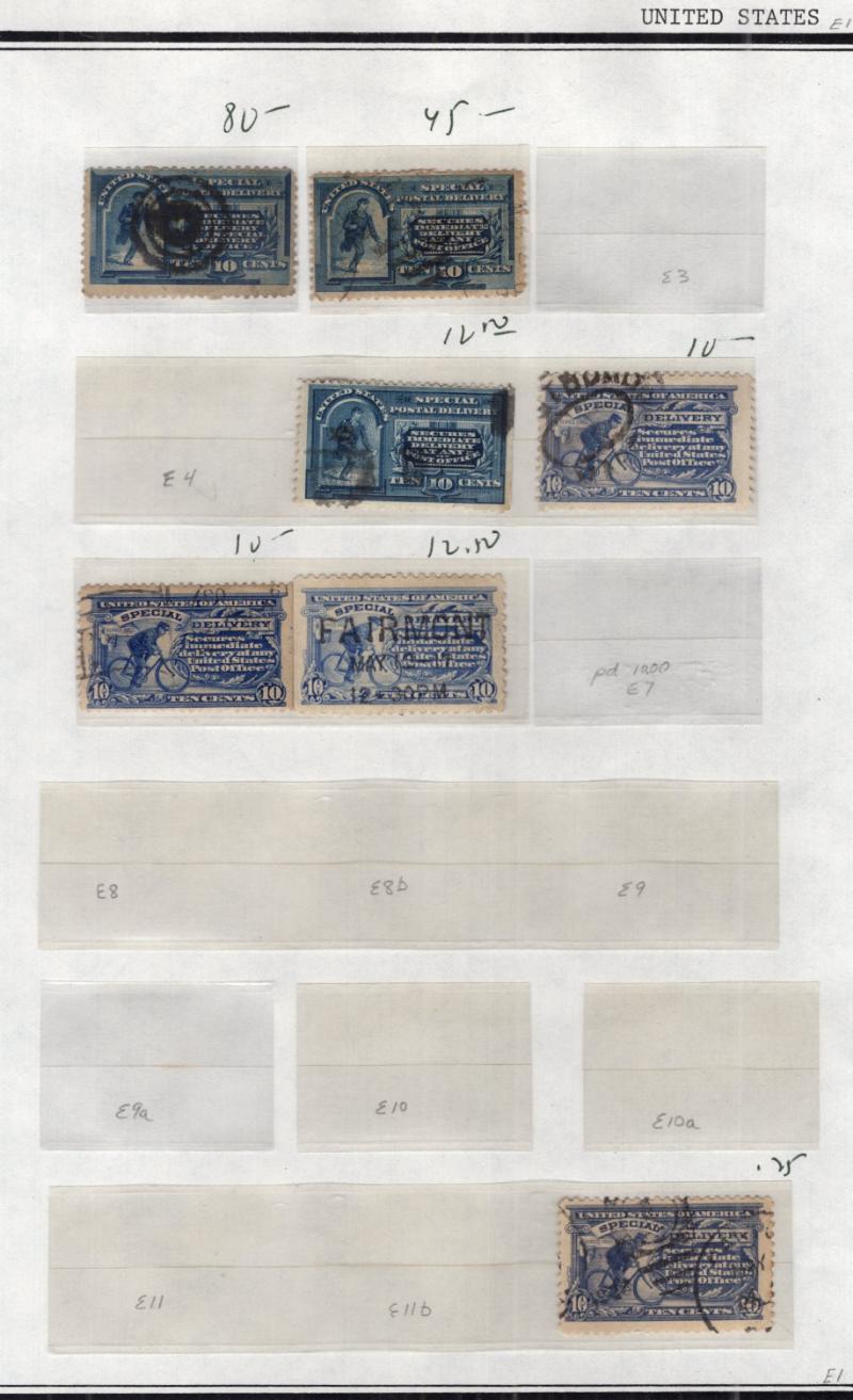 459 image Accum abt (1000+) */O 19/20th Cent hinged & mounted on album pgs & abt (100+) IDed 102 cards & glassines; incl unused W/A album 1926-40s incl BOB, C10a NH & Used: #68 (2), 77, 78, 112, 151, 163, 238, 294-99, E2 (3), E3 (6), E4 (2), Q1-12 & much more; some light dup; owner's CV $7,500 (NV); few flts to gen F-VF H/NH (Image) (imageb) (imagec) (imaged) (imagee) (All Images)