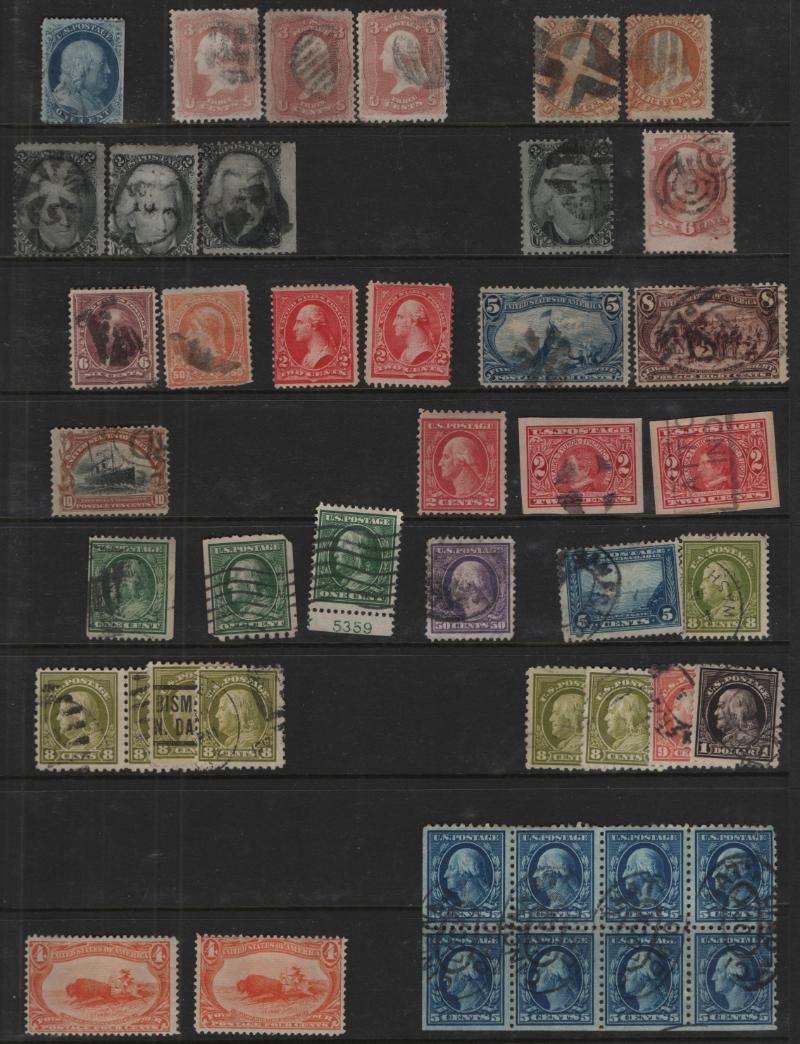 444 image Accum */O (100s) 19/20th Cent sorted in stkbk; commems, regs, airs, special delivery, dues, officials, cut squares, revenues, M&Ms, little bit of everything; incl used #14, 15, 70, 71, 76 (2), 78, 87, 112-17, 116, 119, 151, 153, 165, 166, 327, 342, 400, Wash/Frank w/ coils, Q1//12 w/ dup, R51a, R52b, R64b, R80c (2), unused incl 73, 211, 296-97 RG, 299 RG, Wash/Frank, some Kans-Nebr, 832 (3), 833-34, 1612 PBK NH (4), 1612 Blk/6 NH (4), C2 NG, O92, CSA 8, 11, 11a, 12d; group of UN sgls & Blks; cond varies widely, flts to sound, Avg-VF, gen Fine to F-VF (Image) (imageb) (imagec) (imaged) (imagee) (imagef) (All Images)