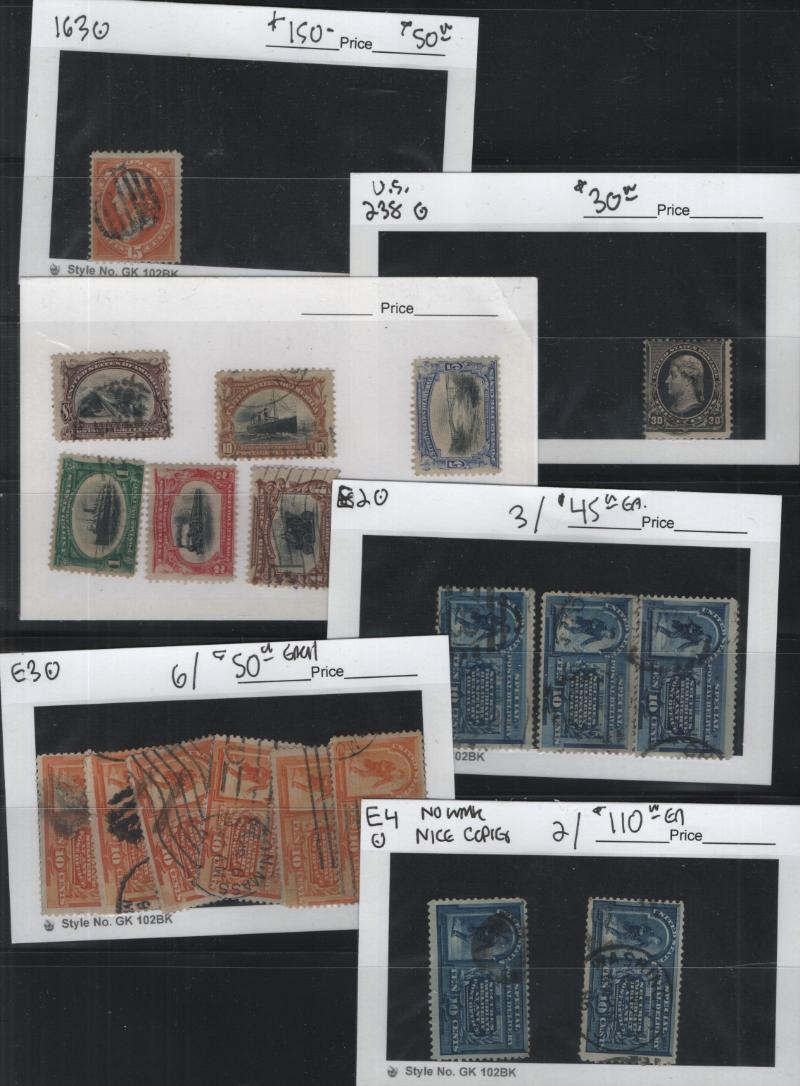 460 image Collector Stock (1000s) */O in glassines & 102 cards incl Unused: #286 NH Blk, 656 NH pair, RE188, 716 PBK, CE1 PBK, abt $1,100 FV postage; Used: 69, 115, O73-82 (O73 unused, O80 small hole, O82 RP); also group of (8) special tax stamps (est retail abt $250); early cond mixed, later few flts but mostly NH & gen F-VF (Image)