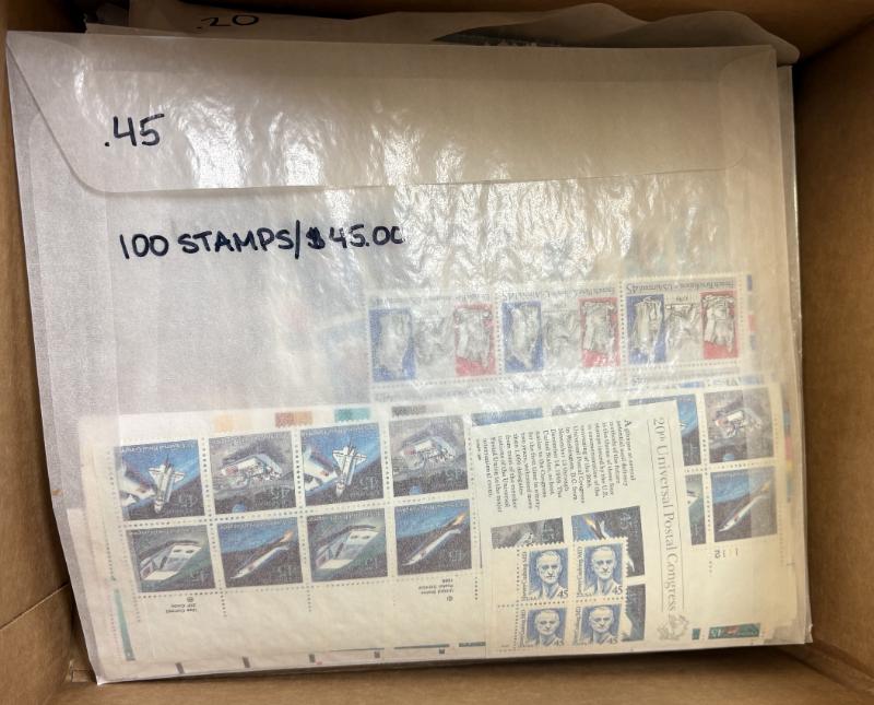 502 image POSTAGE 10¢ to 45¢ all sorted in large glassines, part sheets, Blks, strips, singles, FV $1,247, gen VF NH (Image)