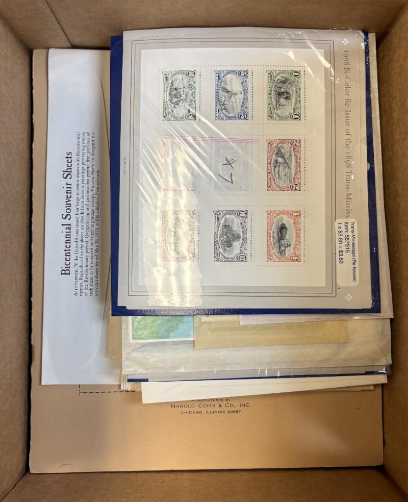 501 Several better modern items: Recalled Legends of the West in blue env (plus a normal one); Washington 2006 S/S (4); 2004 Duck stamp NH; $16.25 Marine One PBK (2); $71 FV in full panes incl #3646, Old Glory prestige booklet, 3830, 3870, other 37¢ers; in glassines or original packaging (proceeds benefit PA Brethren retirement community stamp club)