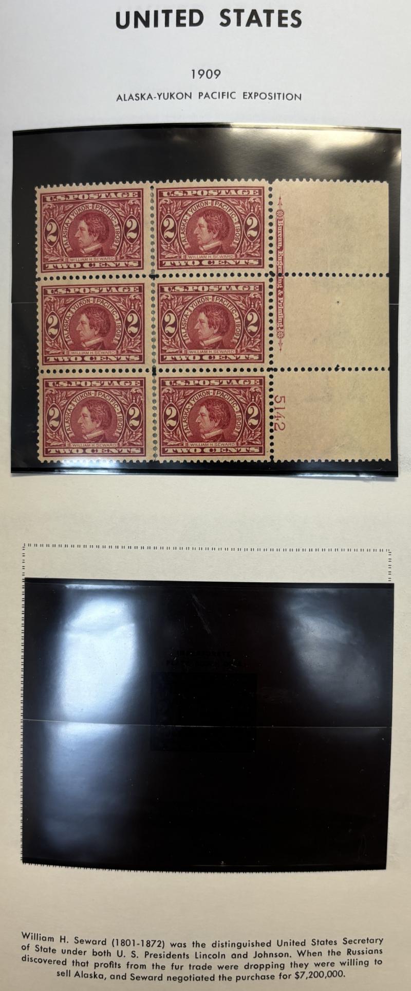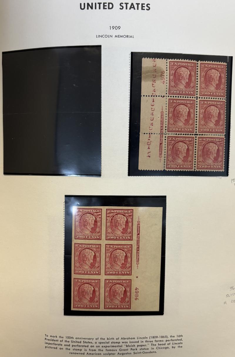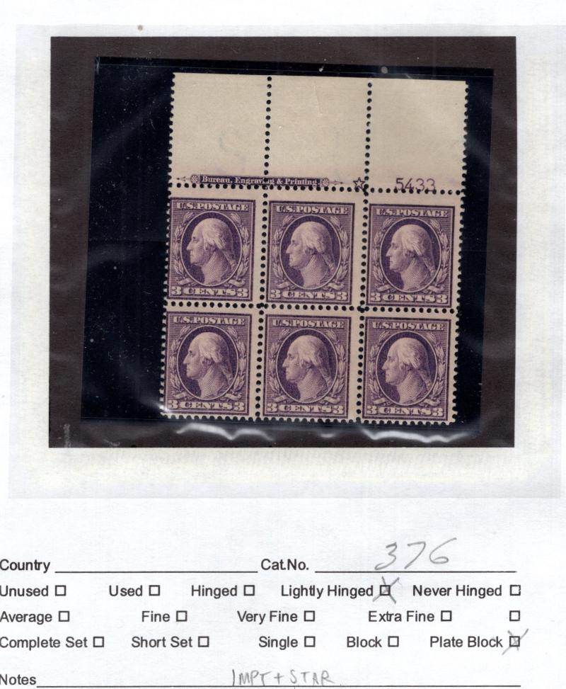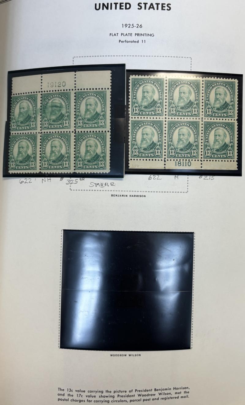 327 glazed gum, split, 328-30 PBK/8 glue reinforced seps, 368 DG, 369 glazed gum, rejoined, 370 DG, 399 Blk w/ pl#, 401 DG, 537, 537 NH, possible 537b NH, 548-49 NH, 550, 556, 571 VLH, 575-76 NH, 577, 581 DG, 583 NH, 614-15 NH, 620 PBK/8, 622, 622 NH