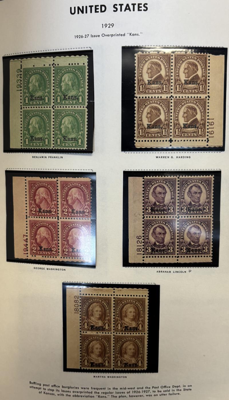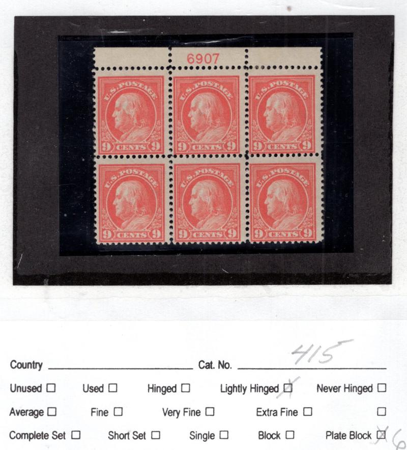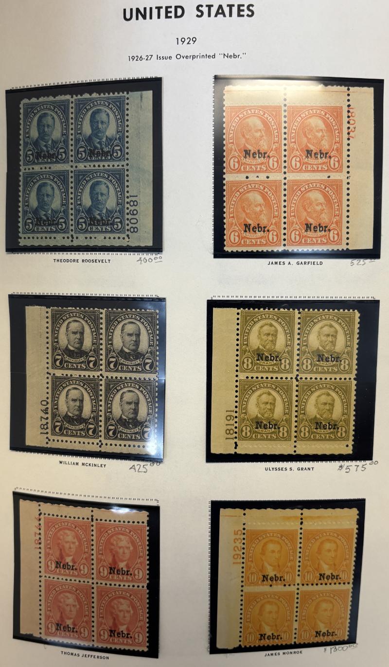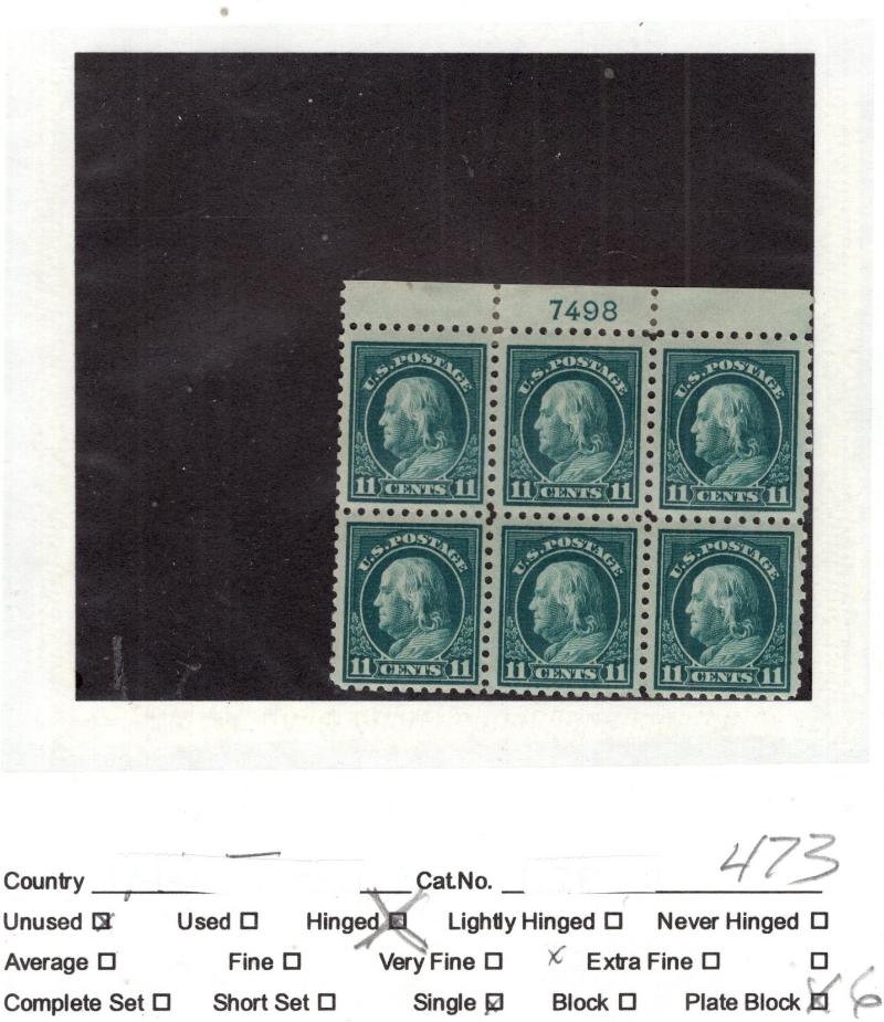 327 glazed gum, split, 328-30 PBK/8 glue reinforced seps, 368 DG, 369 glazed gum, rejoined, 370 DG, 399 Blk w/ pl#, 401 DG, 537, 537 NH, possible 537b NH, 548-49 NH, 550, 556, 571 VLH, 575-76 NH, 577, 581 DG, 583 NH, 614-15 NH, 620 PBK/8, 622, 622 NH