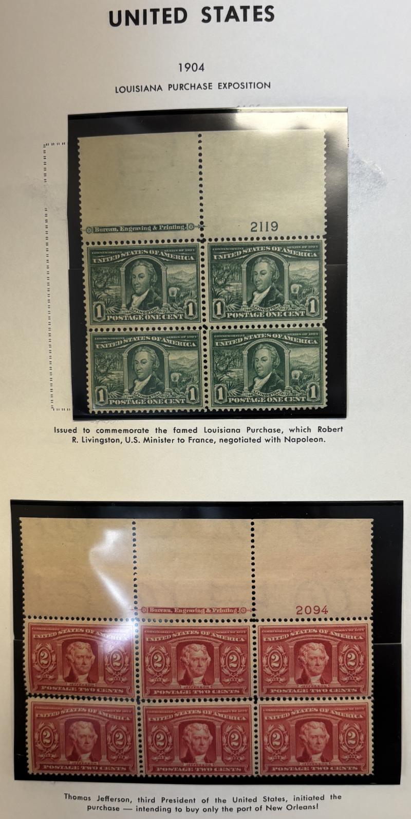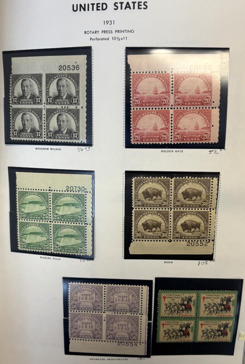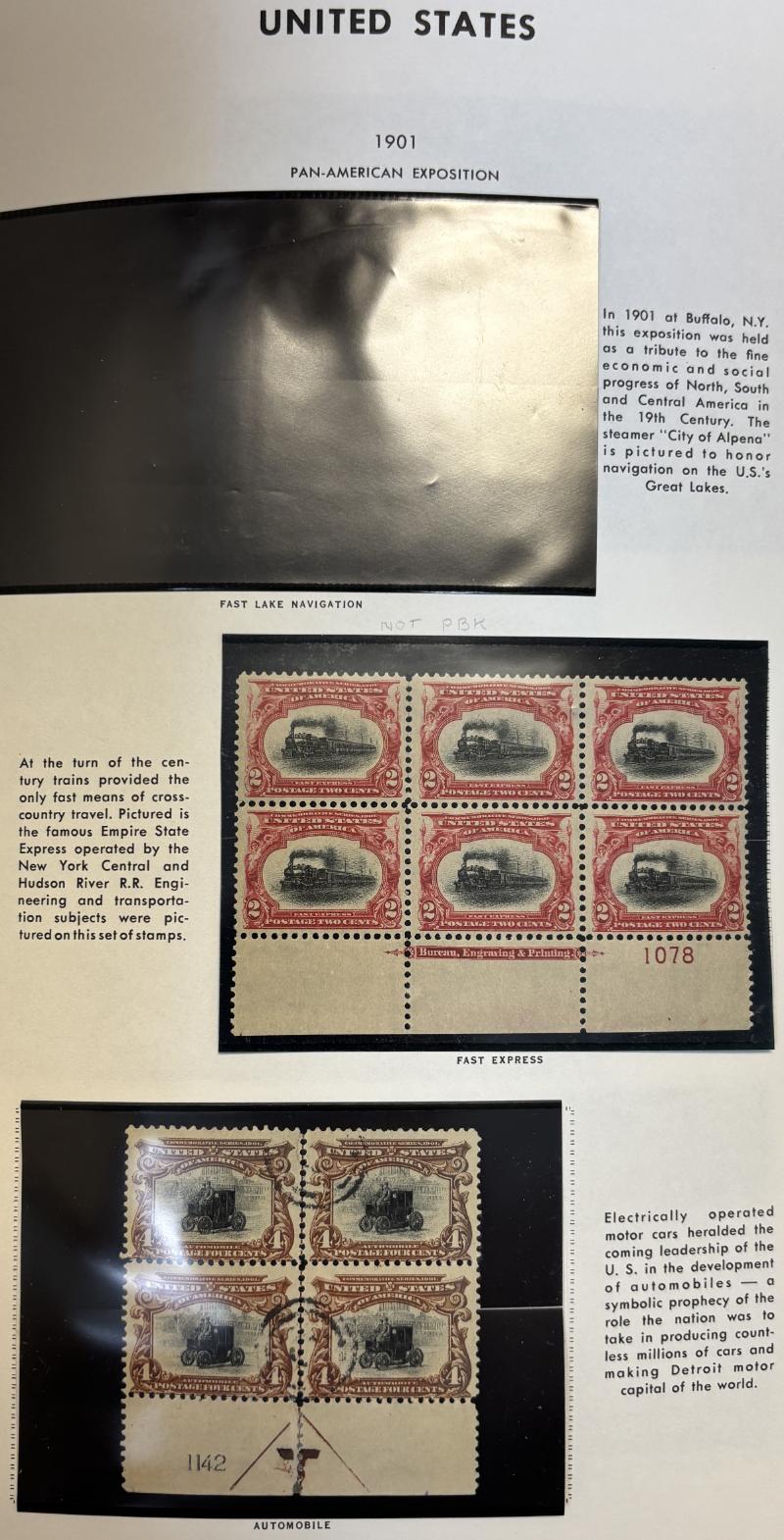 Extensive Plate Block Collection Unused (1000s) 1890s-1990s w/ BOB (C, E) mounted on Harris pgs in (3) Liberty albums; incl #231 NH, crease tear, 285-86 NH but glazed gum, 287 PBK/4 NH seps, 295 part OG, 296 used Blk w/ pl#, 323 NH, NGS, 324 NH seps,