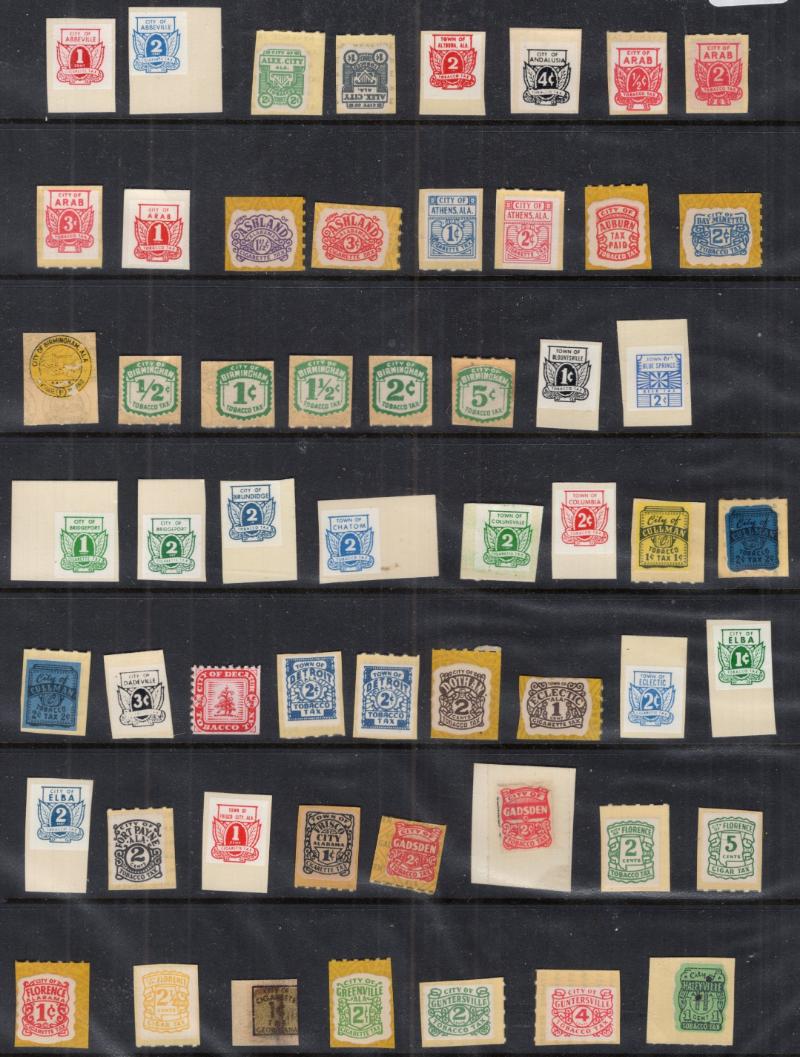 541 image ALABAMA REVENUES Accum (100s) unused city & county revenues, mostly Cigarette, Cigar & Tobacco incl sgls, scrap & a few bklts 20th Cent on (8) well filled Hagner pgs; also incl abt (10+) used 1870s Retail Liquor Dealer tax remainders; some light dup; gen F-VF NH (Image) (imageb) (imagec) (imaged) (All Images)