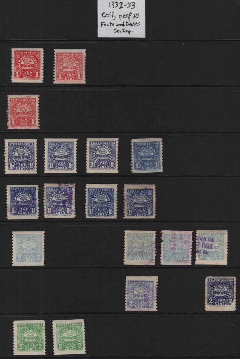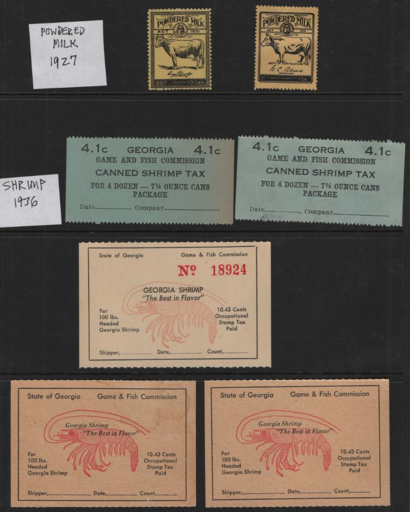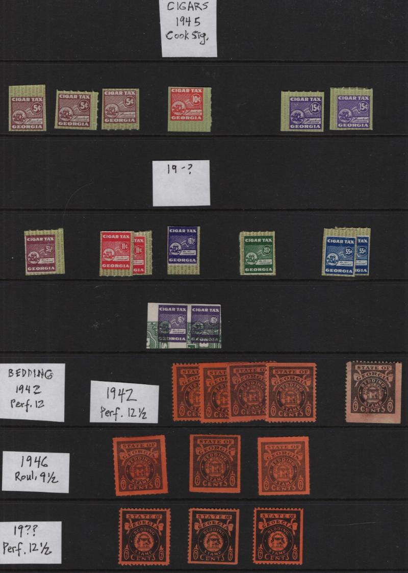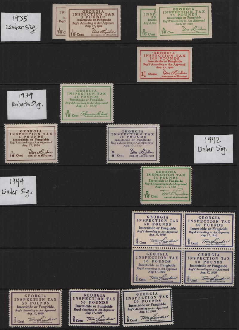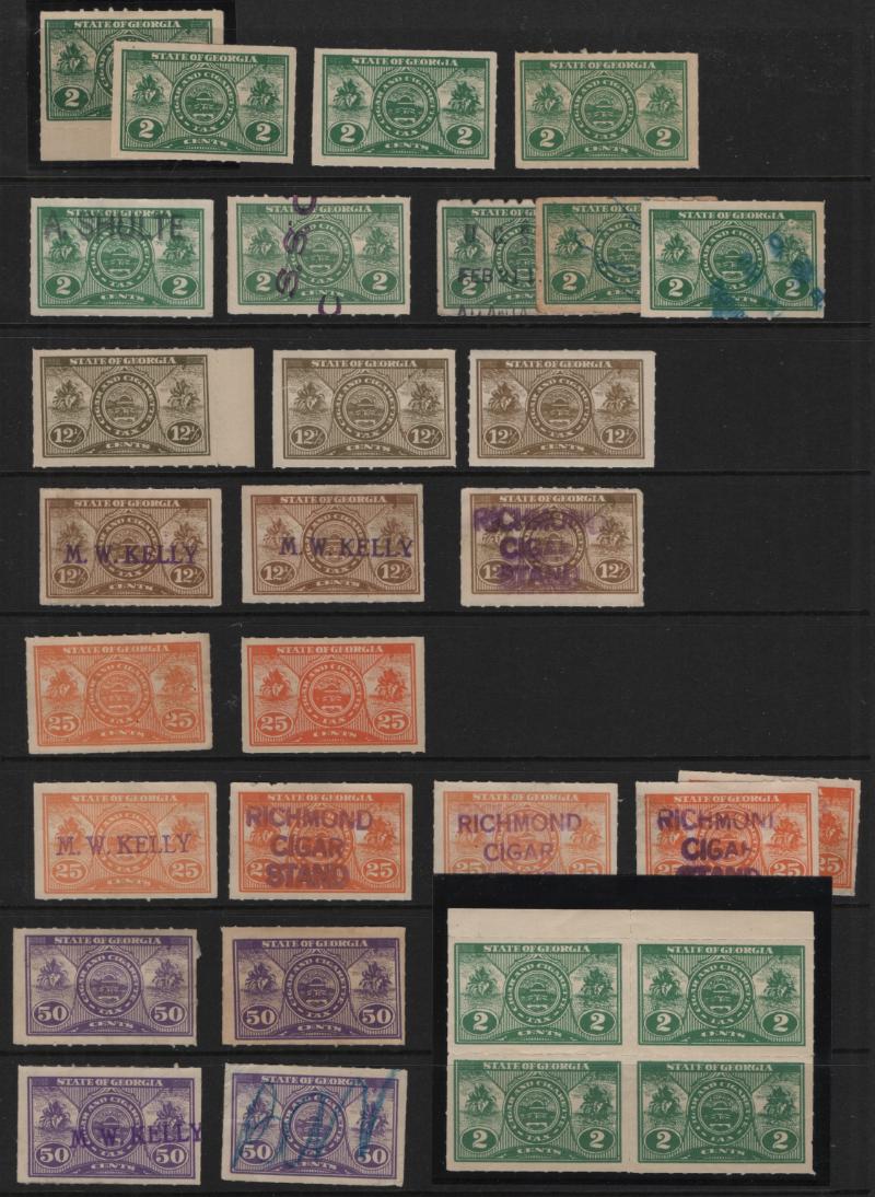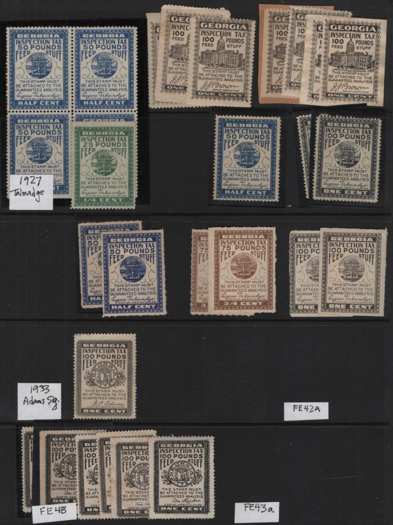 542 image GEORGIA STATE REVENUES Accum (100s) mostly unused 20th Cent, in abt (30+) Hagner stkpgs incl sgls, Blks & strips, types incl Cigarettes, Cigars, Cotton Seed Meal Inspection tax, Feed Inspection tax, Fertilizer Inspection, Fruit, Insecticide or Fungicide Inspection, Liquor, Oleomargarine Inspection, Oysters, Shrimp, Powdered Milk; owner's CV $1,670+ (NV); some light dup; gen F-VF H/NH (Image) (imageb) (imagec) (imaged) (imagee) (imagef) (imageg) (imageh) (imagei) (All Images)