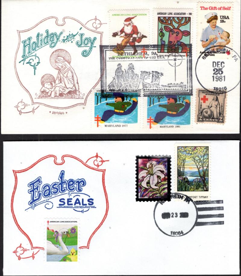 552 image Large Accum many (1000s) modern Christmas & Easter seals, unorganized & abt (3000) 1980s-2000s Christmas & Easter seals on FDCs, Christmas & Easter covers organized in boxes; covers gen VF, cond of seals varies (Image) (imageb) (All Images)