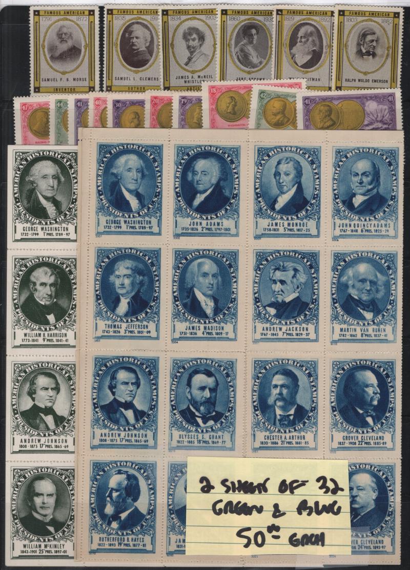 553 image Accum abt (450+) seals, labels & poster stamps featuring mostly Presidents, famous people & historical events; incl sgls & sheets; some light dup; owner's retail value $1,500 (NV); few flts but gen F-VF NH (Image) (imageb) (All Images)