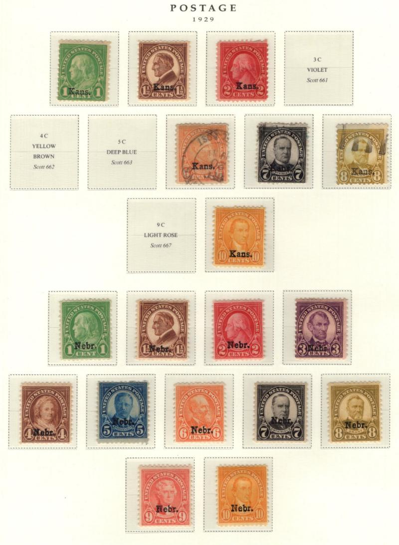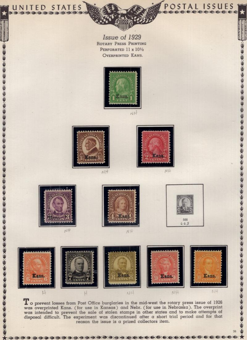 NH (need Cert), 630 HR, seps, 656 pair NH, 669-79 Nebr, Farley gutter/line pairs & cross gutter Blks, C1-3, C4-6 NH, C18, F1 NH; incl */O Kans Ovpts, Prexy & Liberty, airmails, some dues & officials, Q1-9; CV (to 1935) over $37,000; cond varies, 19th
