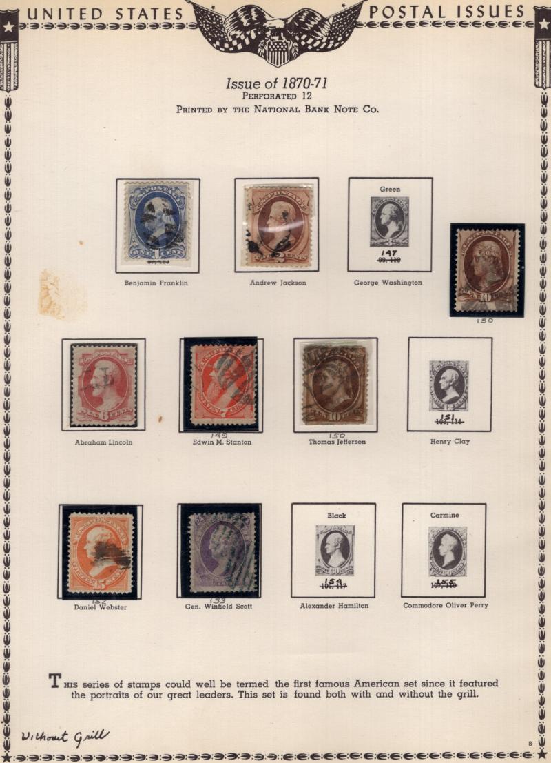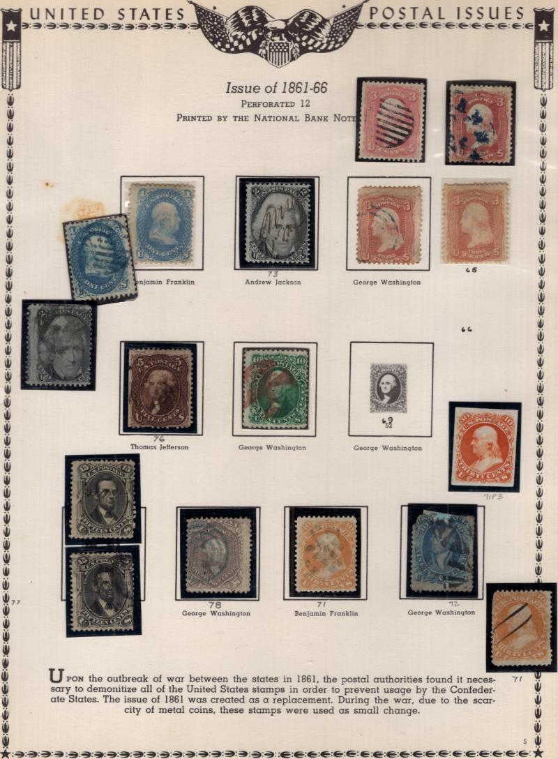 Collection Used (1000s) 1845-1978, hinged in Scott Natl album; commems, regs, BOB & revenues; incl used owner IDed (NV) #9X1, 1, 7, 26A, 68 (2), 69, 71, 73, 76, 77 (2), 78, 78 (b ?), 87, 90, 92, 97 RP, 112-17, 119, 121 flts, 135, 151, 152, 153, 154