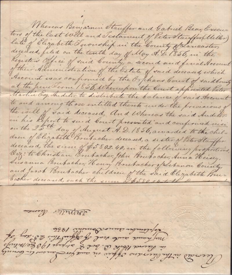 testaments from Lancaster County, personal & commercial corresp, several w/ embossed seals; gen F-VF (Image) (imageb)