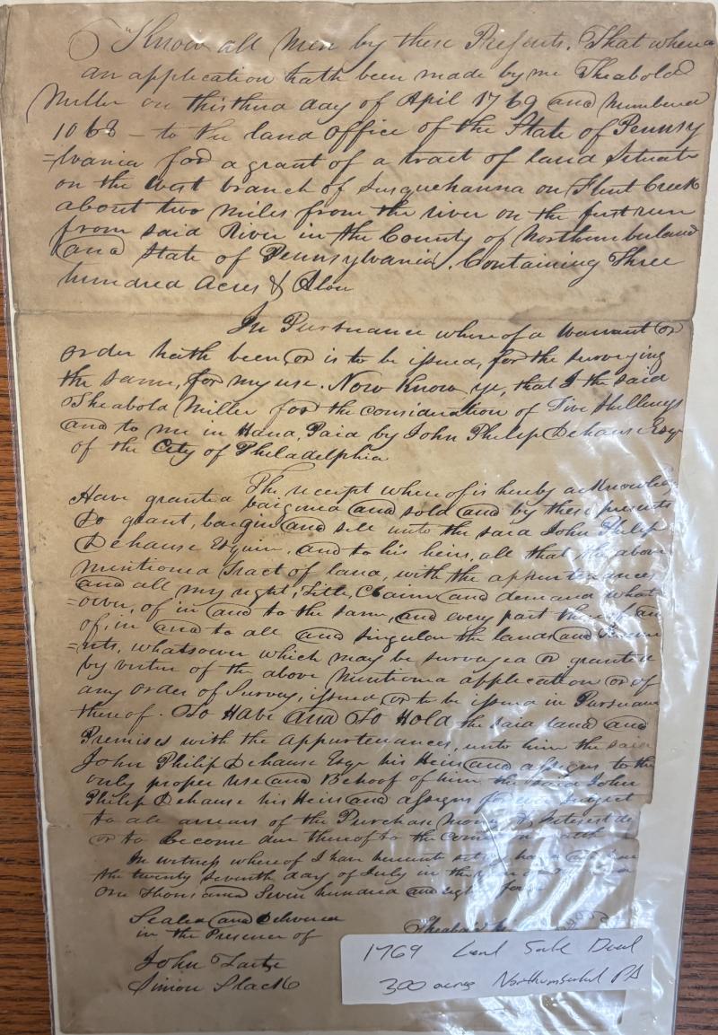 PENNSYLVANIA Documents Collection; oldest is 1784 land sale referring to a 1769 application by Theabold Miller, selling to Philadelphia revolutionary war general John Philip Dehaas; balance are (58) docs 1847-68 in page protectors, incl last wills &