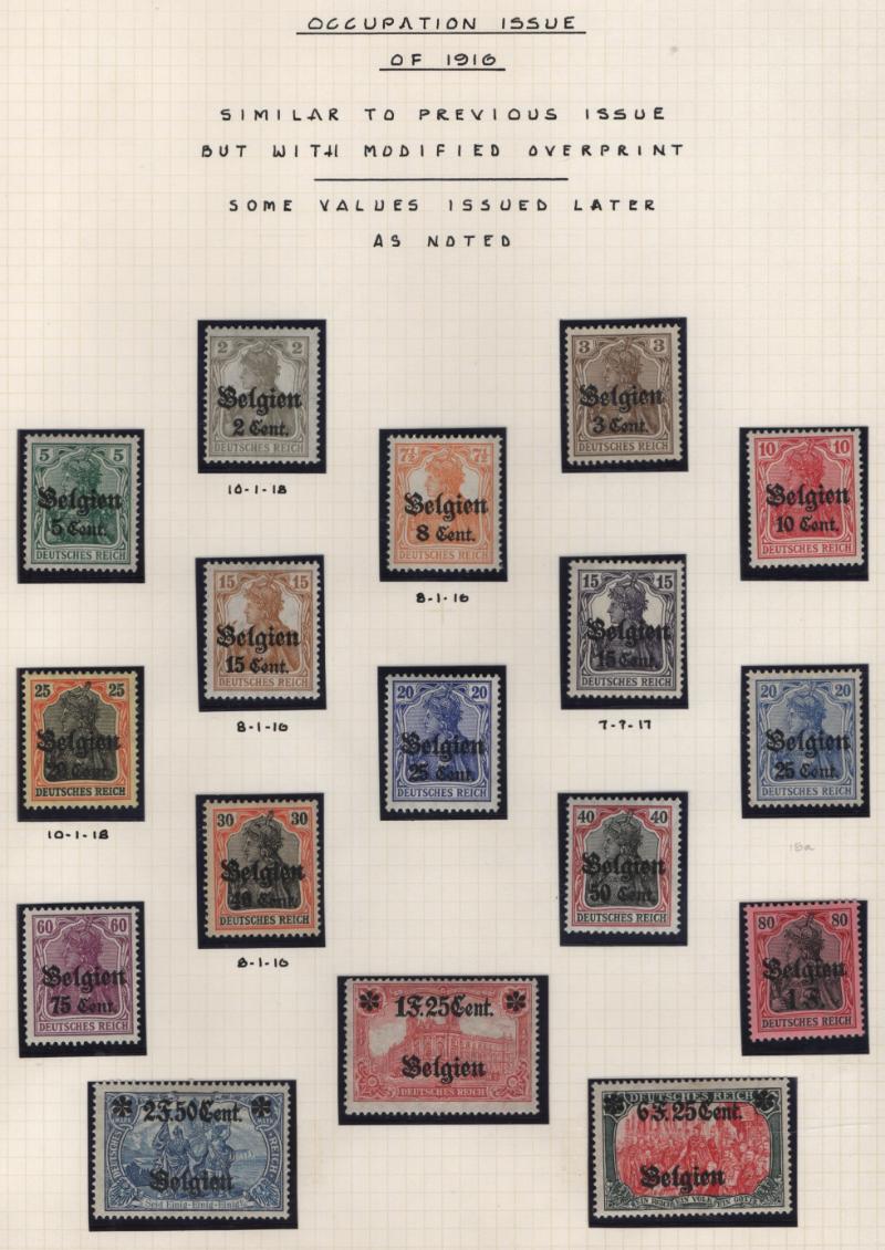 Occupation Unused Collection in mounts on annotated quadrille pgs, Belgium N1-25, N18a, 10c surcharged postal card unused; France N15-26 unused plus full set on philatelic cover, N20a NH; Germany #1N1-58, 1NJ1-10; gen F-VF H/HR/NH CV for hinged over